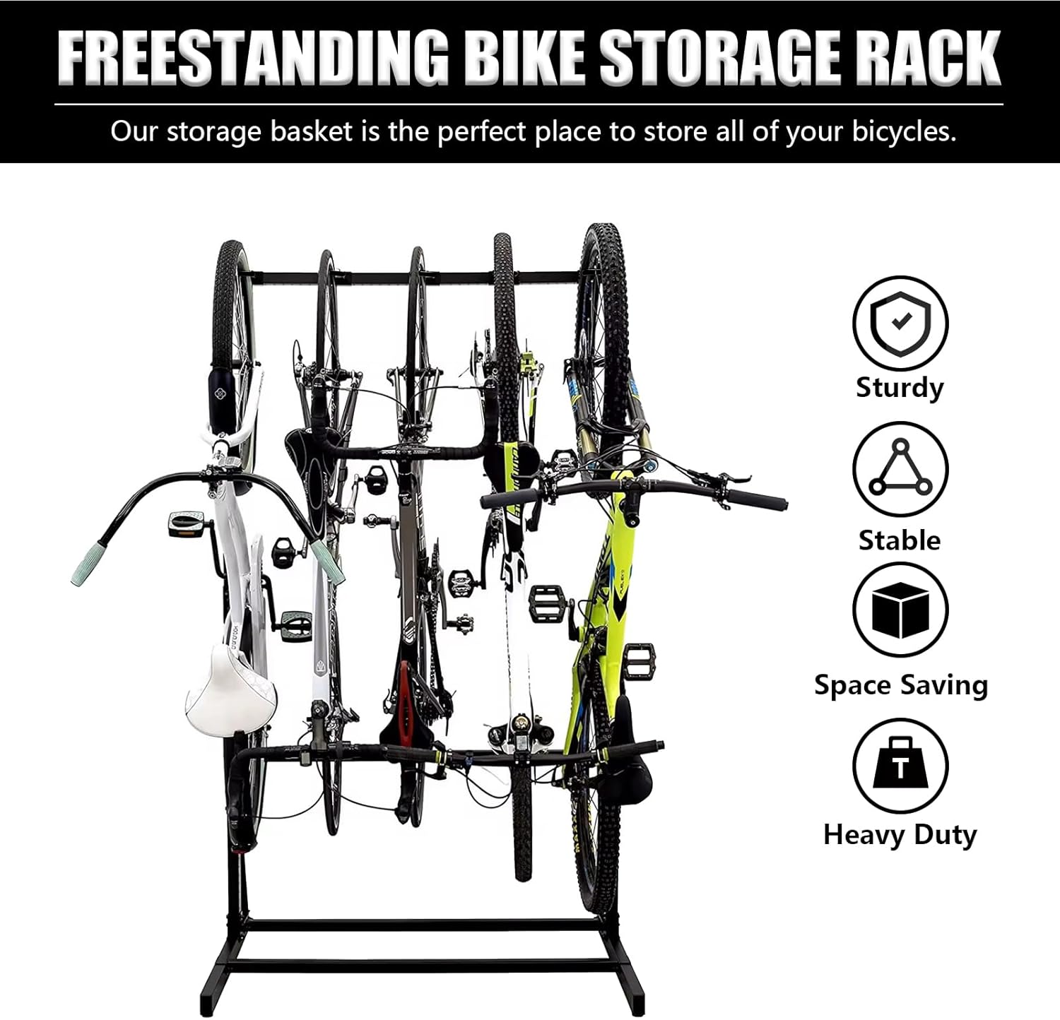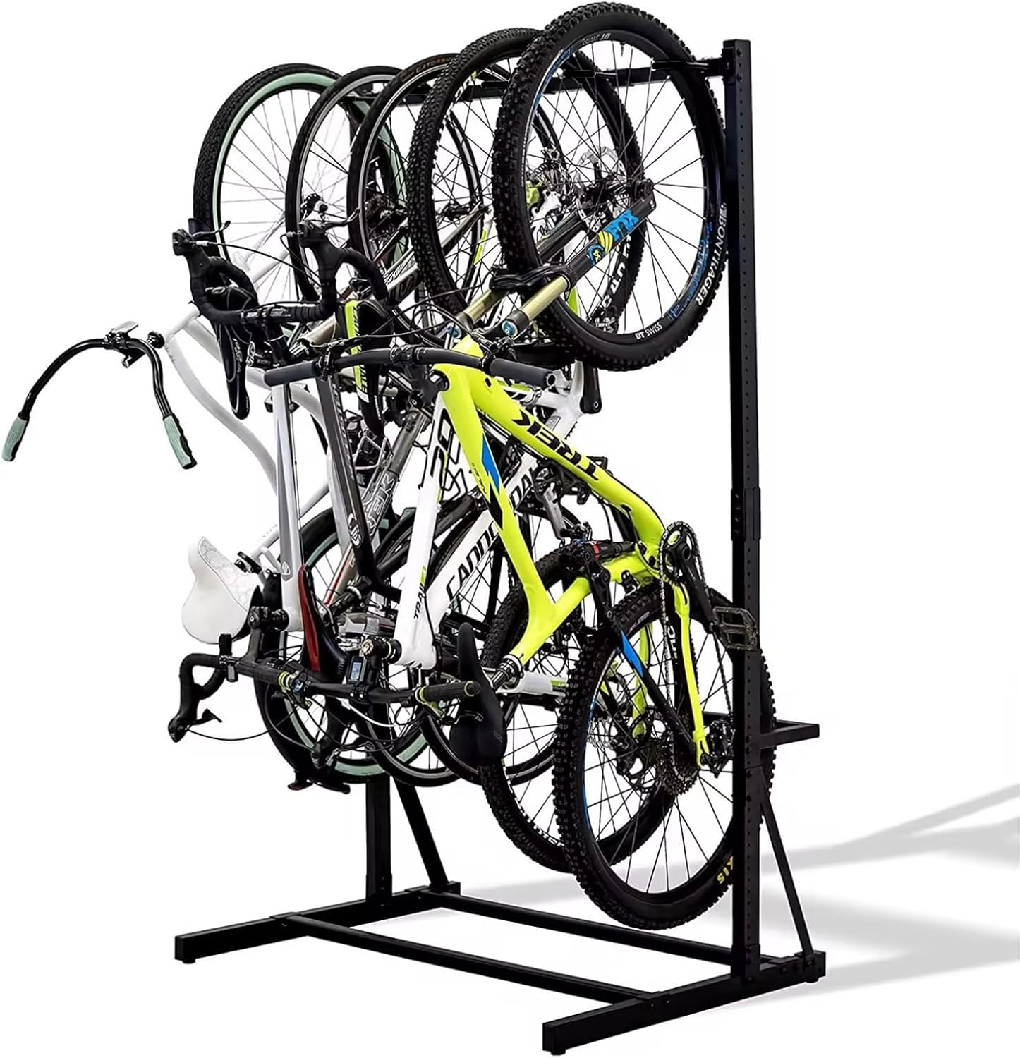 - đ˛ăFREE-STANDING AND MULTI-BIKES RACKă Designed to hold up to 5 bikes upright, just stagger your 5 bikes head to tail in the rack. perfect for storing road bikes, mountain bikes, hybrid bikes, adult bikes, kid bikes, etc.
