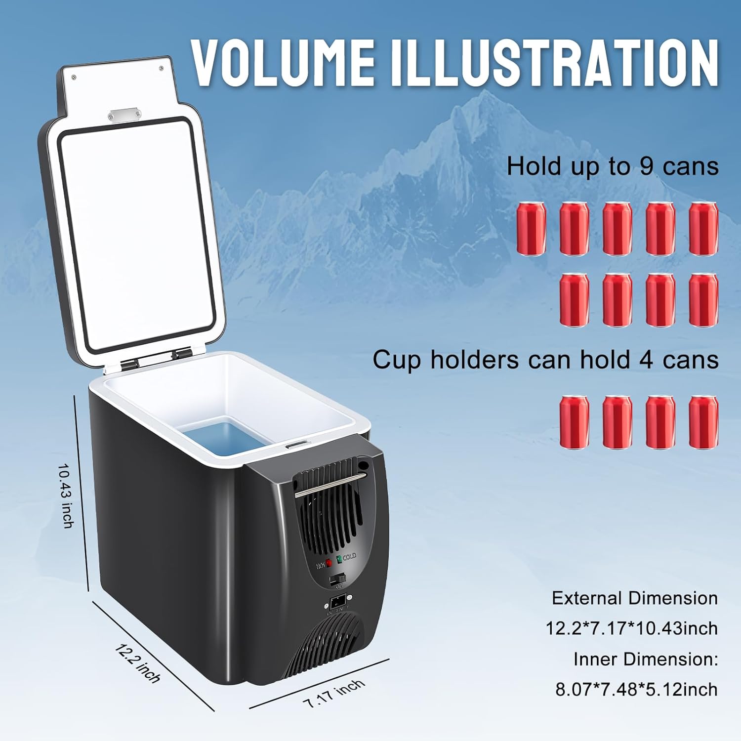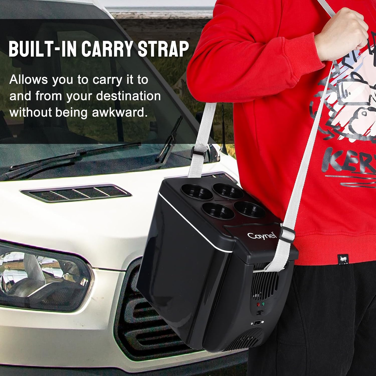 CAYNEL 12V 6 Quart Personal Thermoelectric, 6 Liter Capacity, Portable Electric Cooler Warmer with 12V DC, Small Fridge for Car, RV, and Camping Use