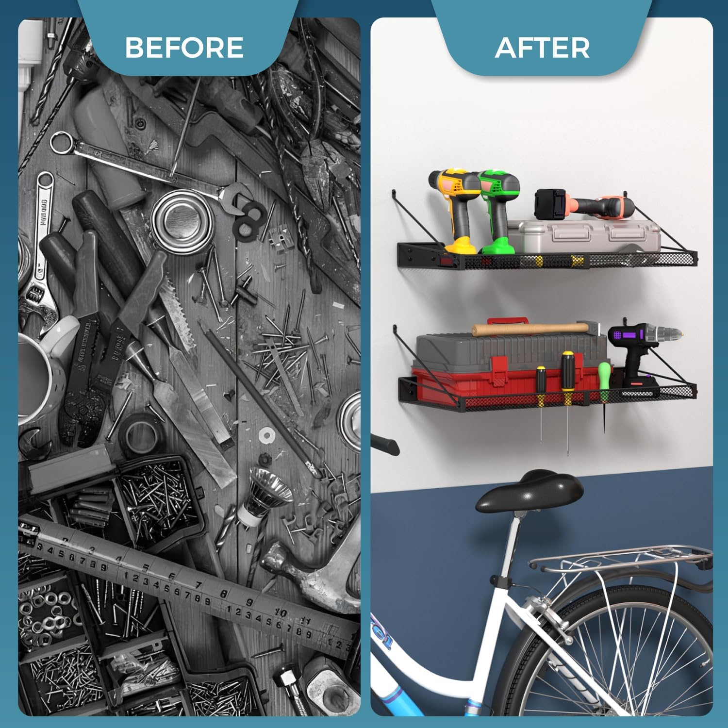 - šļø Generous Storage Area: Each shelf measures 23.7" x 12", providing ample space to organize tools, bins, seasonal items, and more, keeping your garage clutter-free.