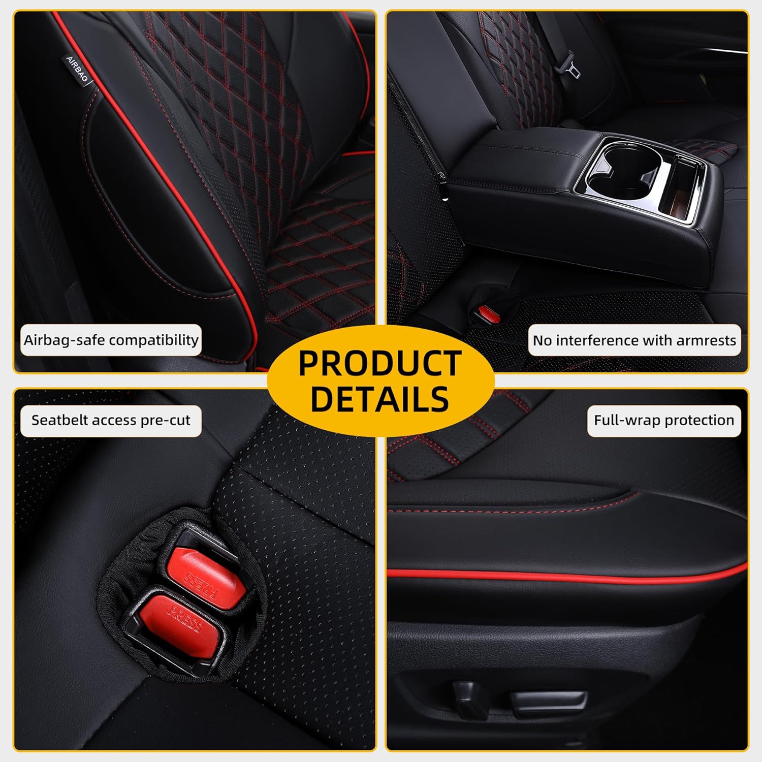 Custom Fit Camry Seat Covers for Toyota Camry LE,SE,SE Nightshade 2018-2024 Full Coverage Waterproof Breathable Leather Car Seat Covers Full Set(Black with Red Trim)