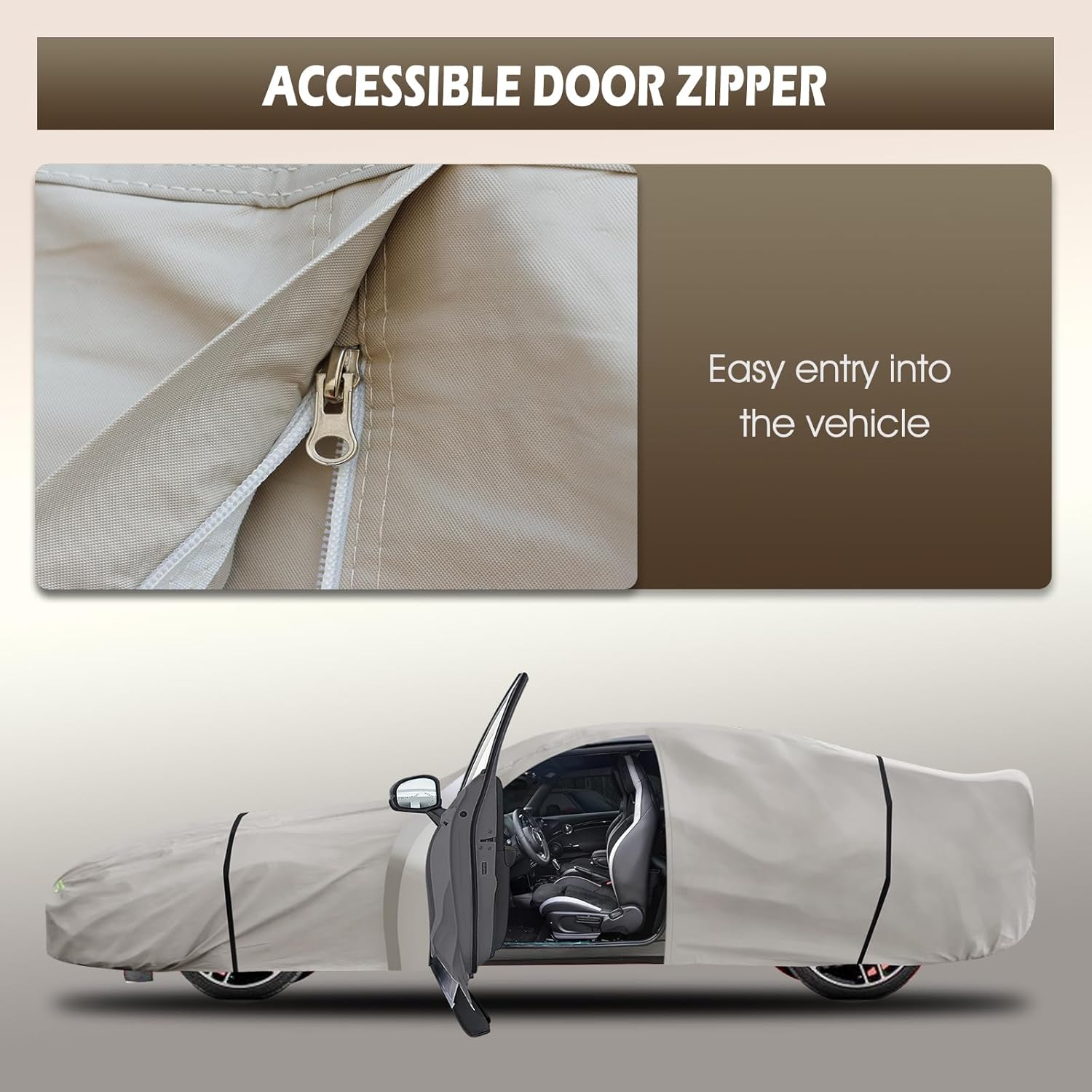 - Safety and Convenience Design: 1)The driver's position of the Migaven full exterior covers has a zipper, which allows you to enter the car at any time to retrieve items without removing the cover. 2) Equipped with six reflective stripes, the full-coverage reflective stripes remind others at night to ensure parking safety. 3) It comes with a storage bag for easy placement.