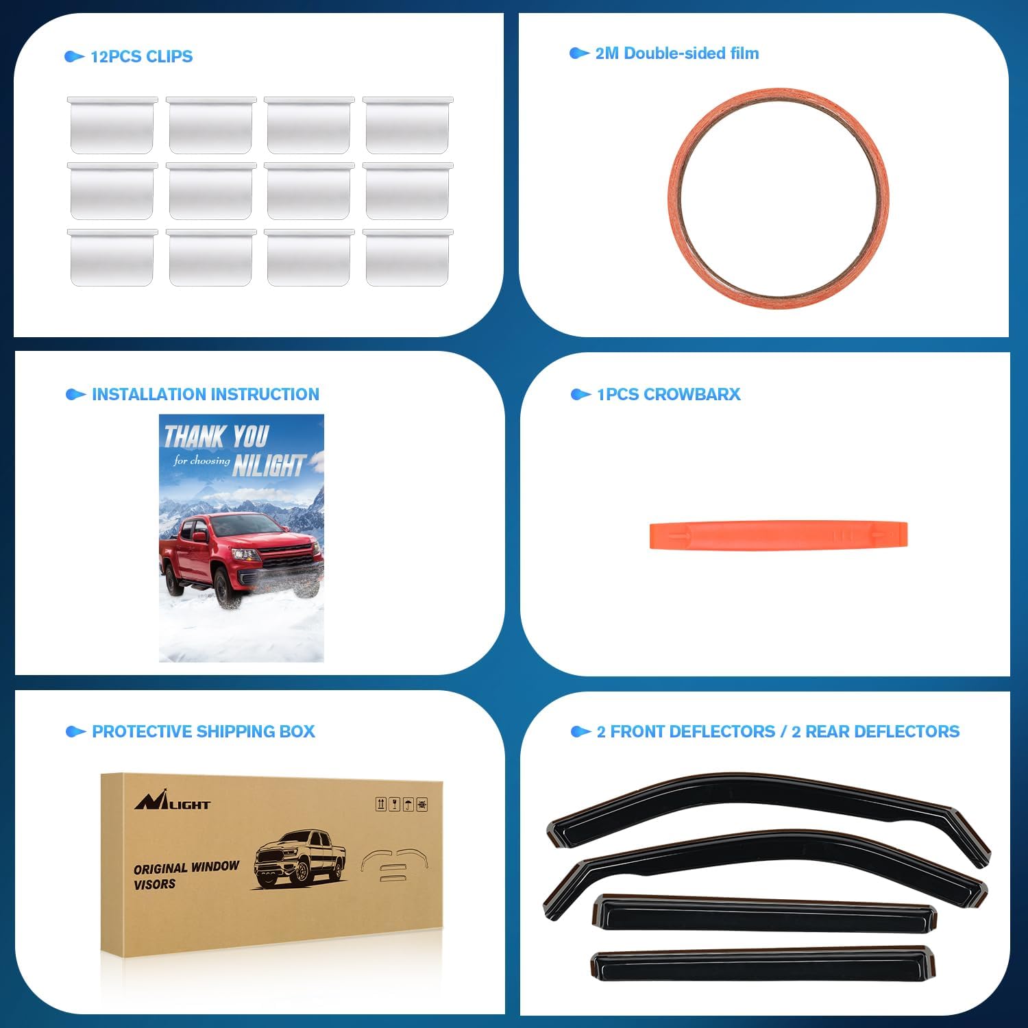 - Advantage:Nilight window deflectors are great for all weather conditions,help improve ventilation inside and outside your car to reduce mirror and window fogging while increasing air circulation.With our side window deflectors, it deflects the rain and noise away from your windows to make your driving more enjoyable