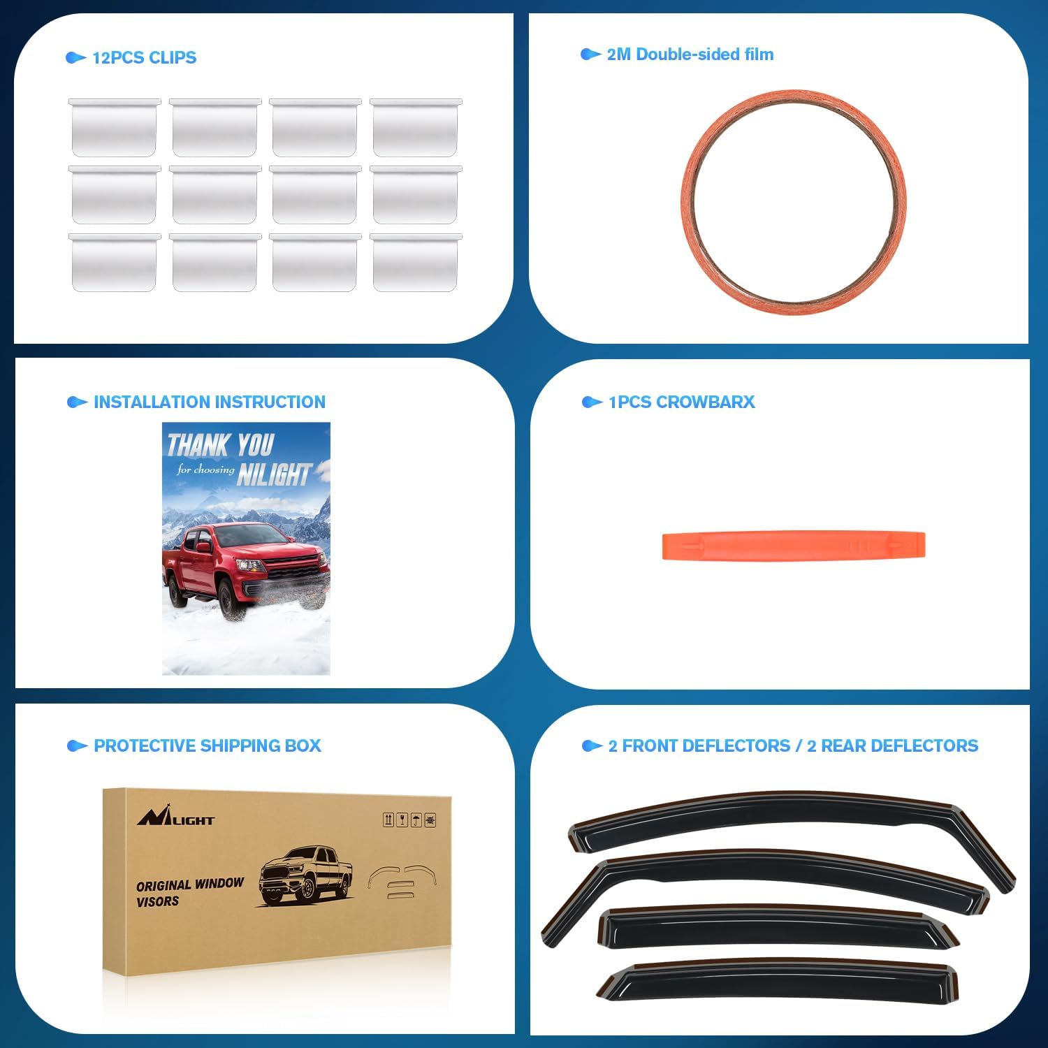 - Advantage:Nilight window deflectors are great for all weather conditions,help improve ventilation inside and outside your car to reduce mirror and window fogging while increasing air circulation.With our side window deflectors, it deflects the rain and noise away from your windows to make your driving more enjoyable