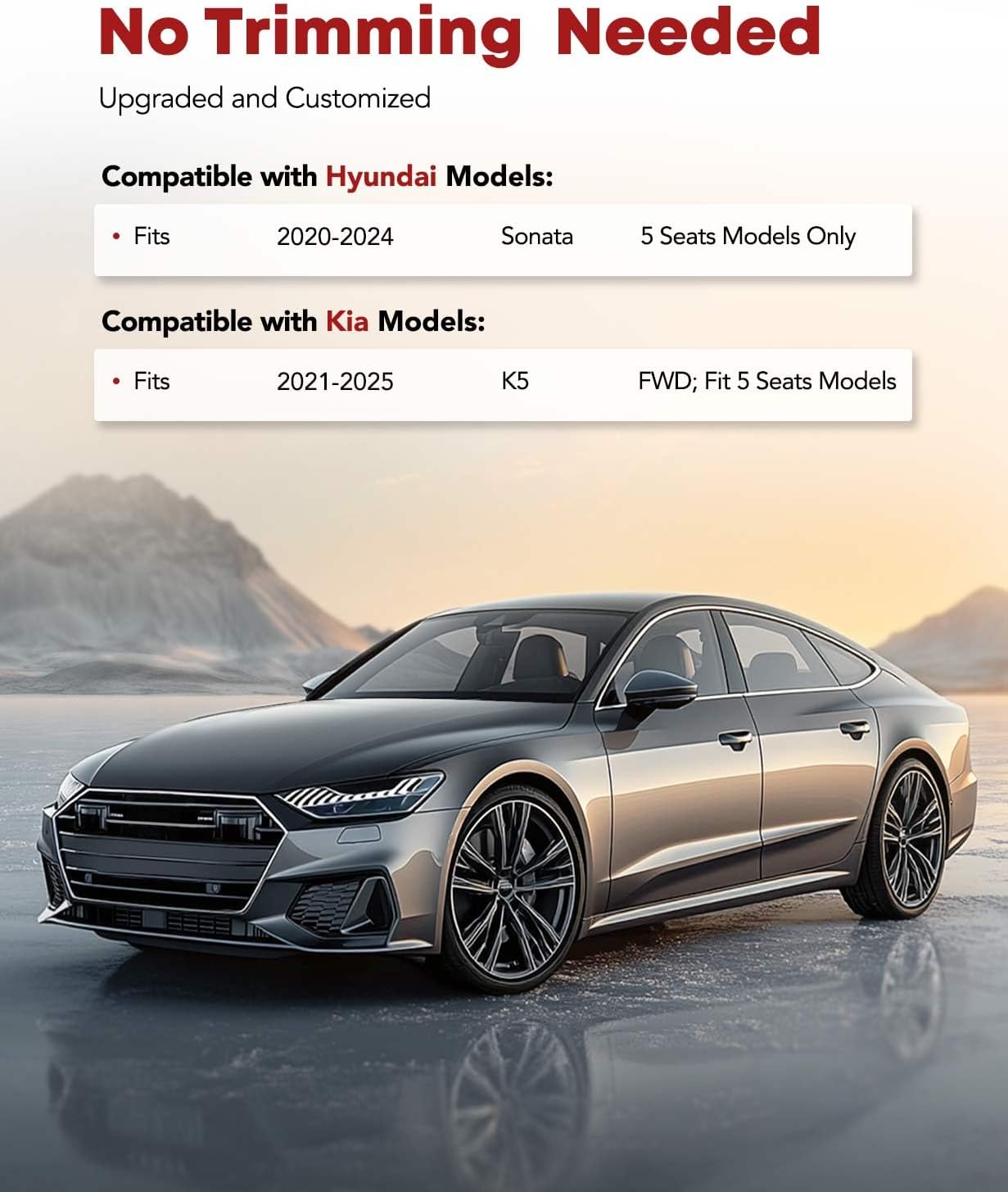 - Perfect Fitment: YHTAUTO floor mats are custom-designed to Compatible with Hyundai Sonata 2020-2024; Compatible with Kia K5 2021-2025 FWD. Advanced 3D scanning technology ensures a perfect fit in with your vehicle, providing excellent protection for every inch of your vehicle's floor