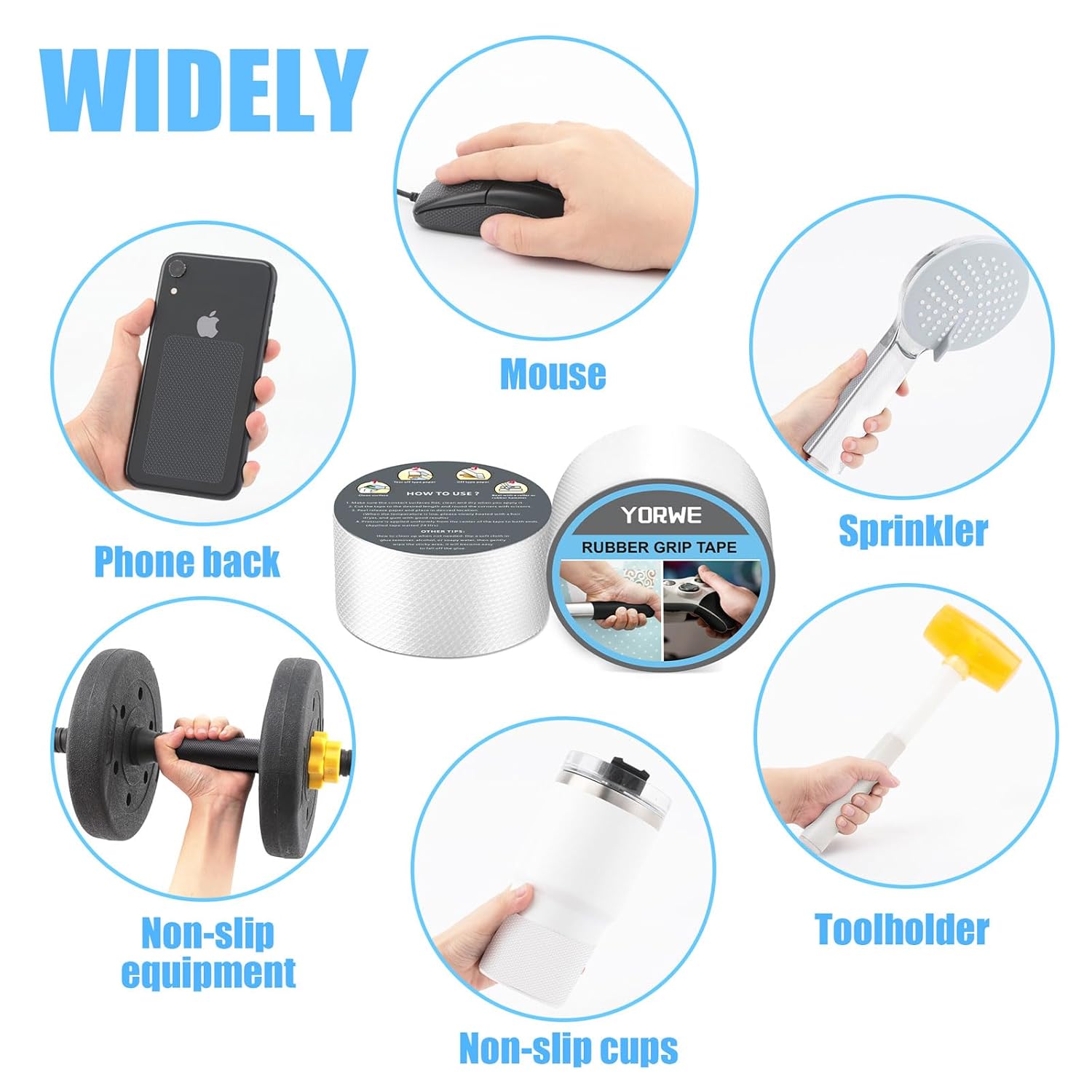 - 4.WIDELY: Versatile and practical, our grip tape can be used on a wide range of surfaces where you need to increase grip. From handrails and bathroom handles to mice, gaming controllers, spoon handles, washing machine lids, phone backs, rocking chair bottoms, cameras, ovens, and more.