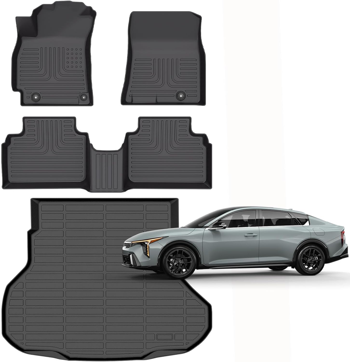 - Custom Fit: Floor mats fit for Kia K4 LX LXS EX GT-Line/GT-Line Turbo 2025. Includes 2 front floor mats & 1 rear floor mat & 1 cargo liner. If creases are caused by transportation, please put the mats in the sun for a while or blow them with a hair dryeries