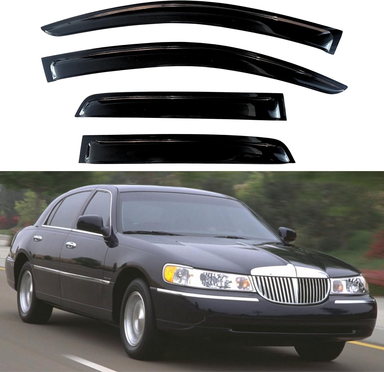 KPY Window Visor Compatible with Lincoln Town Car Sedan 1998-2010, Rain Guard Window Vent Deflectors Tape-On Style, 1998 1999 2000 2001 2002 2003 2004 2005 2006 2007 2008 2009 2010 (Sedan Only)