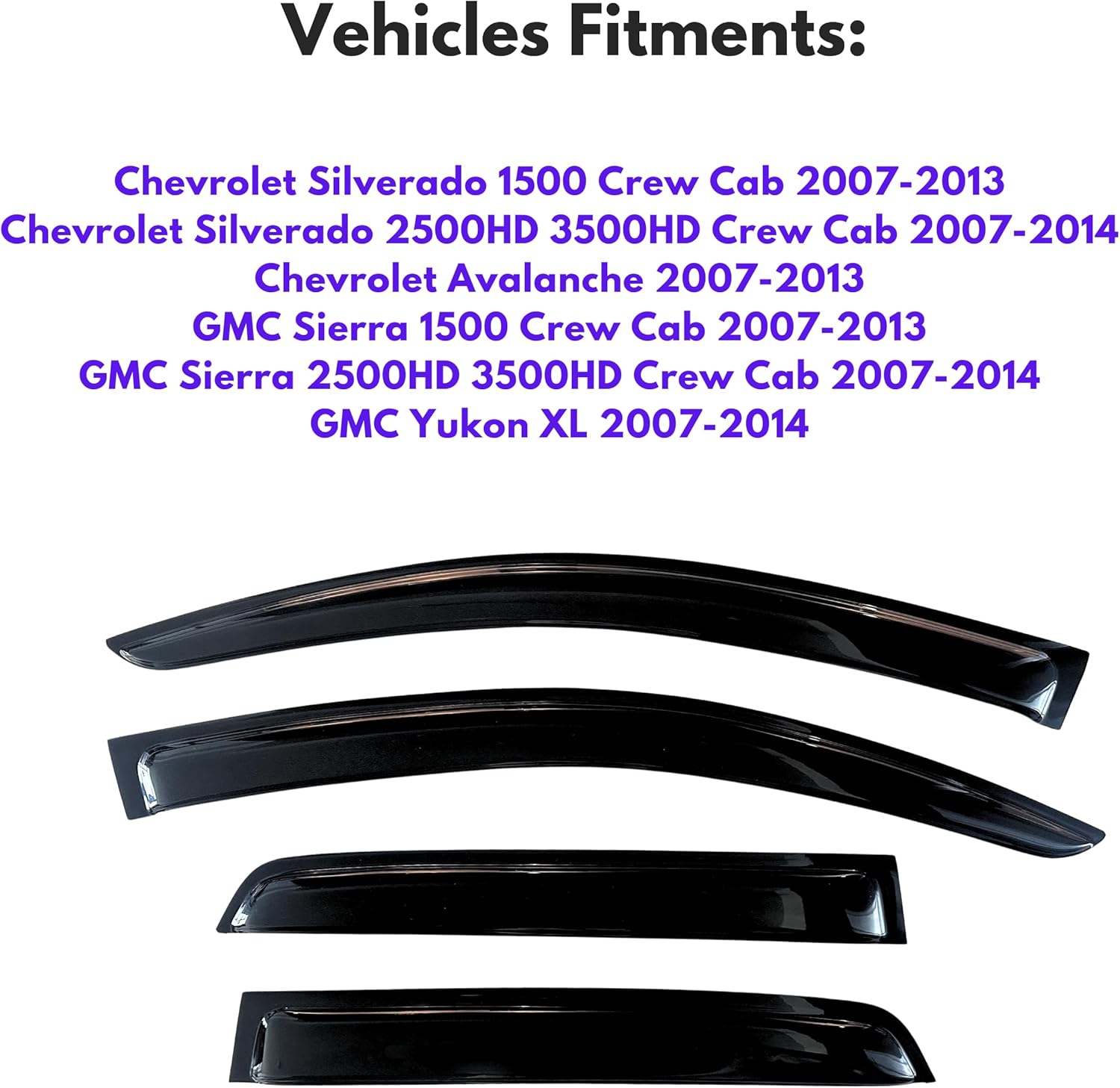 - 【Perfect Fit】KPY window visors rain guards vent deflectors compatible with 2007-2013 Chevy Silverado Avalanche & GMC Sierra 1500, Rain Guard Vent Deflector for 2007-2014 Silverado/Sierra 2500HD/3500HD/Yukon XL (Crew Cab Only)
