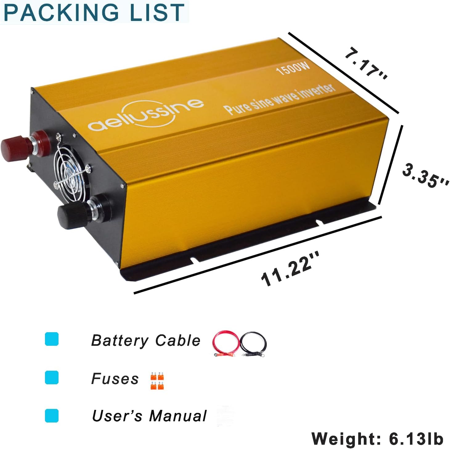 - 【Fully Safety Protections】The pure sine wave inverter has high efficiency and stable performance. It has sound protections including overload protection,over current protection, short circuit protection, battery reverse connection protection, high temperature protection, high or low battery input protection, built-in fuse protection.