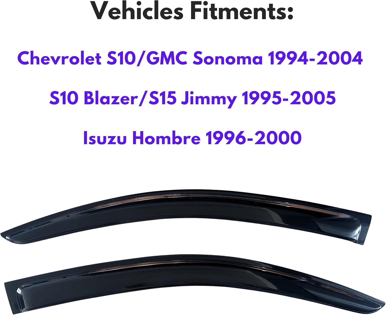 - 【Perfect Fit】KPY window visors rain guards vent deflectors compatible with 1994-2004 Chevrolet S10/GMC Sonoma & S10 Blazer/S15 Jimmy 1995-2005 & Isuzu Hombre 1996-2000