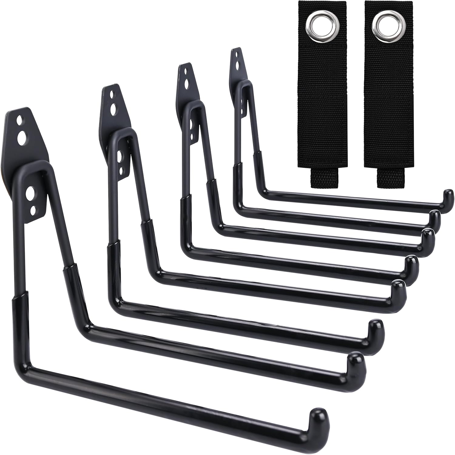 - DURABLE HEAVY-DUTY CONSTRUCTION - Built from reinforced iron tubing, these wall-mounted garage hooks offer superior strength and longevity. Perfect for smaller tools, hoses, and lightweight storage, ensuring a tidy and organized space