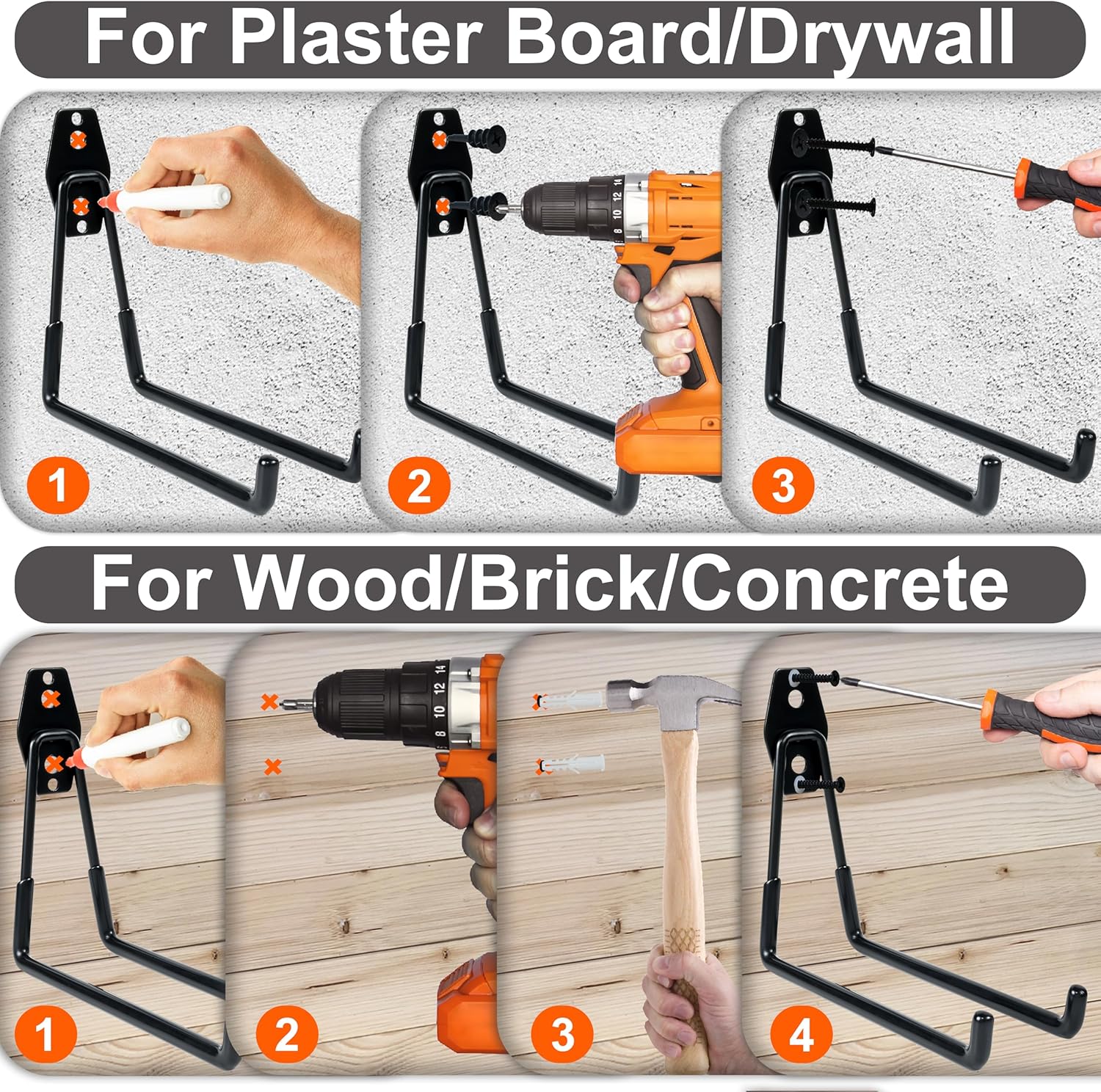 - SPACE-SAVING STORAGE HOOKS - Maximize garage, workshop, or basement storage by neatly hanging small ladders, power tools, extension cords, hoses, and more. Keep your space clean and free of clutter