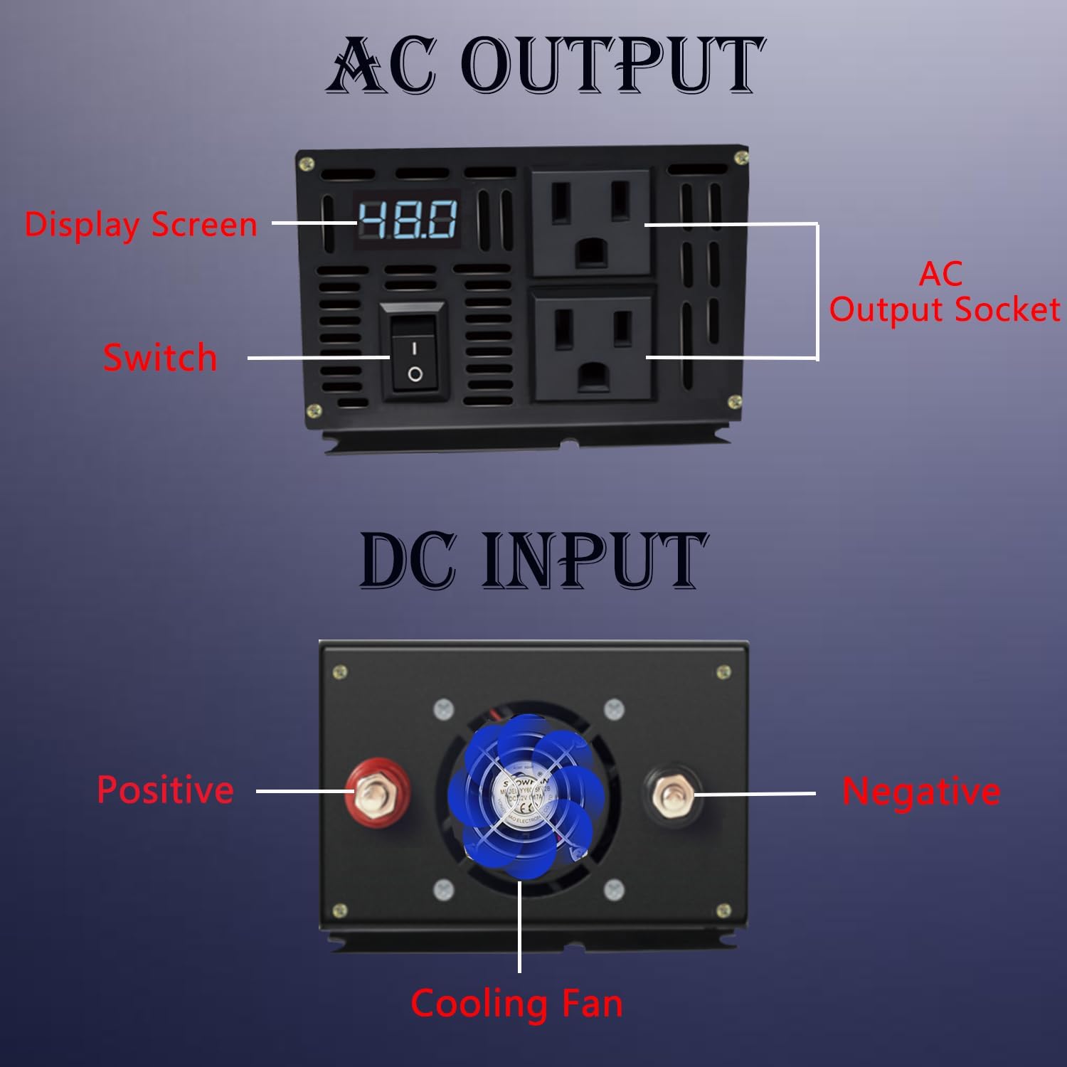1200W Pure Sine Wave Inverter-48V DC to 110V 120V AC Power Converter with 2 AC Outlets, 48 Volt Power Inverter for Truck, Rv, Camping, Home, Emergency Power