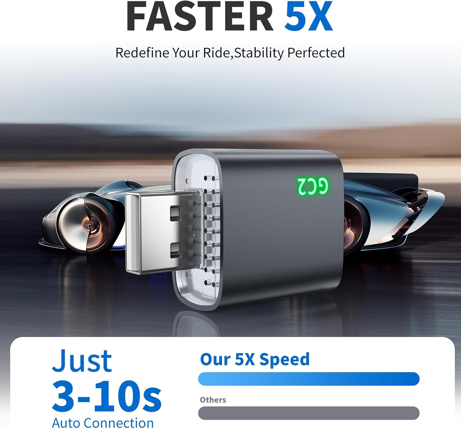 - đăLightning-Fast Wireless Connectionă Achieve 10-second initial setup and 3-second auto-reconnect with our Apple CarPlay wireless adapter. Equipped with 5.8GHz WiFi and Bluetooth 5.3, it delivers 5x faster transmission than standard adapters. Control navigation, music, calls, and messages seamlessly via Siri or touchscreen, buttons, or knobsâzero daily lag ensures safer driving. (Your Cars must support OEM wired CarPlay and USB C Port)