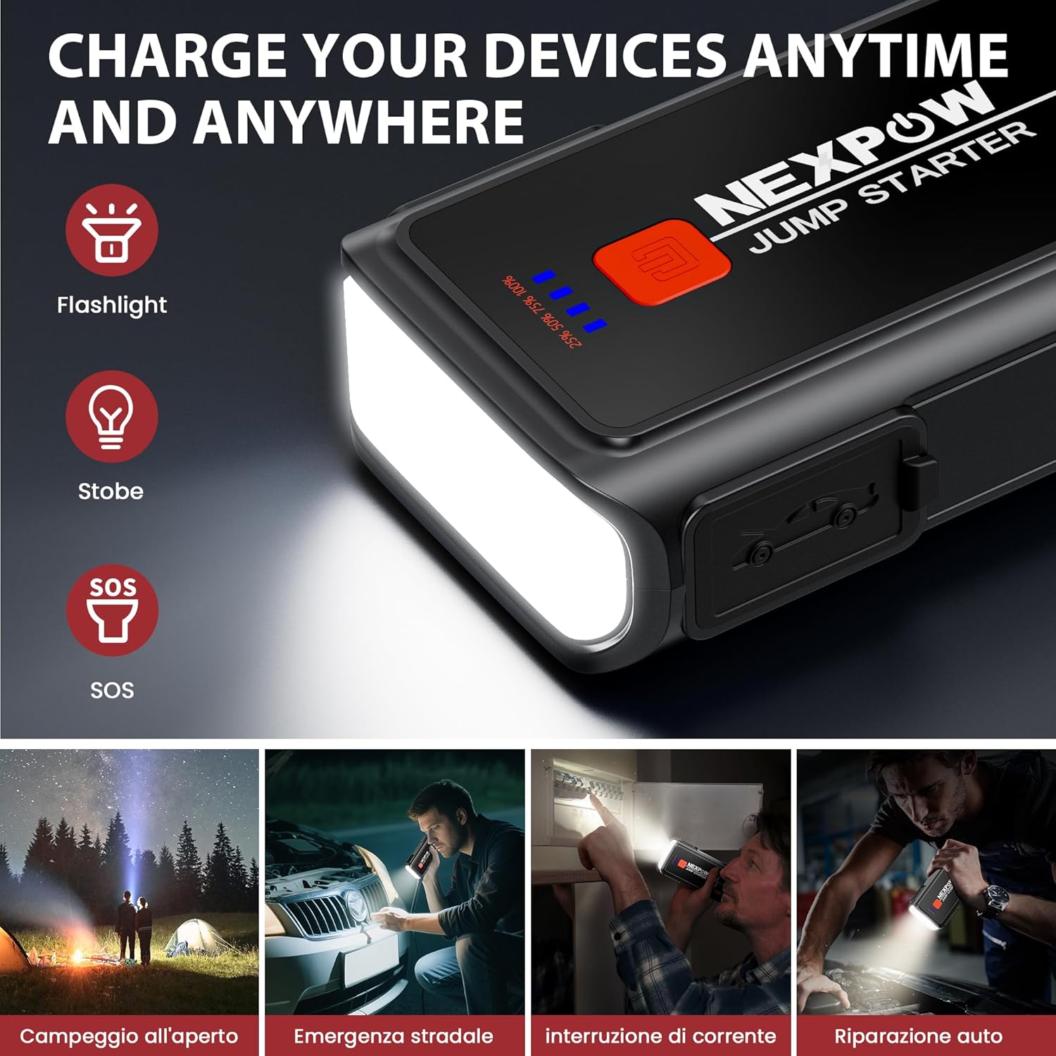 Car Jump Starter 3000A, NEXPOW 12V Battery Jumper Start Pack Kit for Up to 9.0L Gas & 7.0L Diesel Engines, Portable Jump Box with Jumper Cables, USB Quick Charge, LED Flashlight for Car, Motorcycle