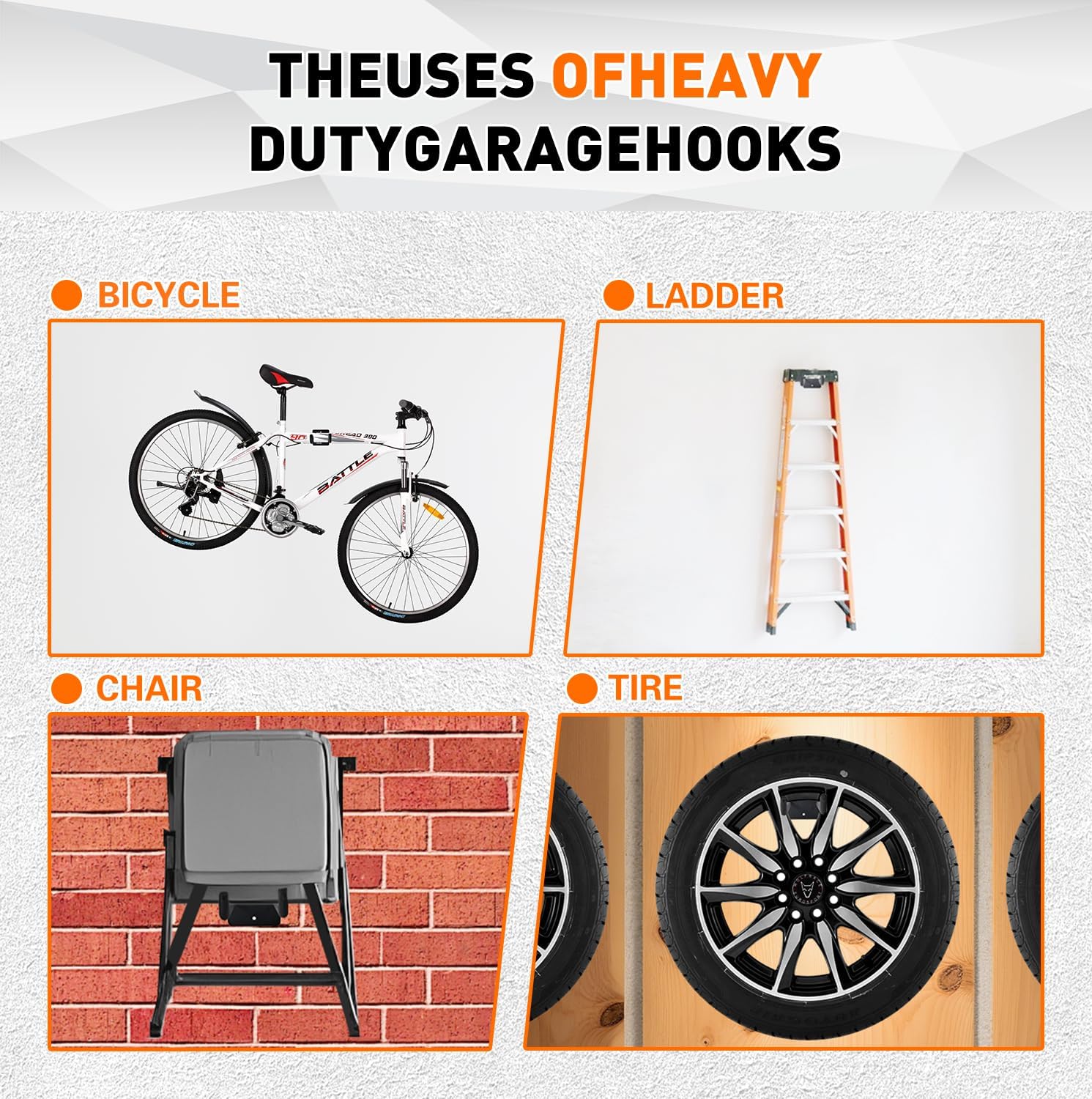- GSYJMRH 4pcs heavy duty garage wall mount organizer of durable high-grade alloy steel, and the one-piece garage double hook is more stable, allowing you to hang tools and other heavy objects confidently. organize your warehouse effectively and meet the basic needs of daily warehousing.