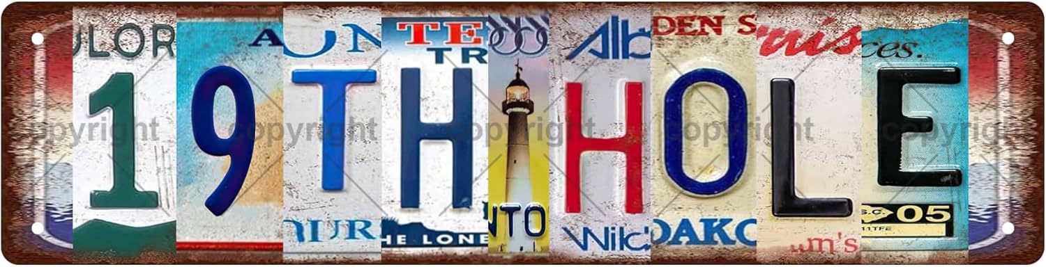 19TH HOLE Space Vintage Metal Tin Street Sign Bar Cafe Garage Cave Home Room Wall Bathroom Farmhouse Garden Porch Patio Decor, 16 x 4 Inch