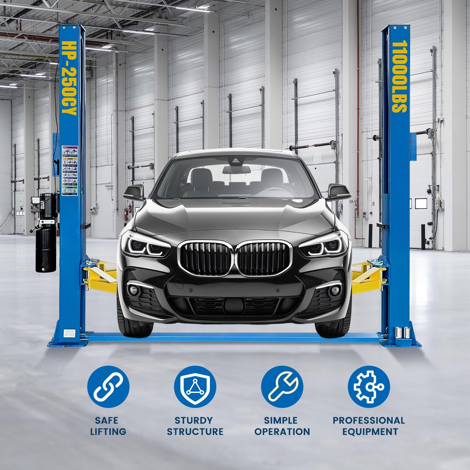 110V Two Post Car Lift 11,000 LBS, Single-Sided Unlocking Heavy Duty Floor Plate 2 Posts Auto Hoist Truck Lift for Garage 3 Year Warranty
