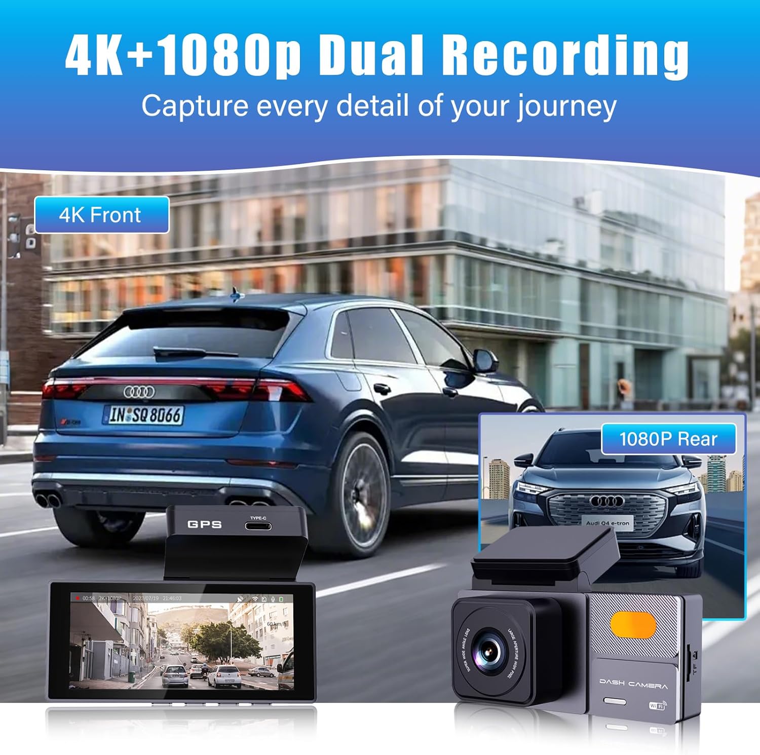 K03 On-Dash Cameras - Front and Rear Dash Cam for Cars, 4K Dual DashCam, Wireless Dash Camera with HDR Night Vision, GPS, Voice Control, Remote Live View - Best Rated Car Camera 2024