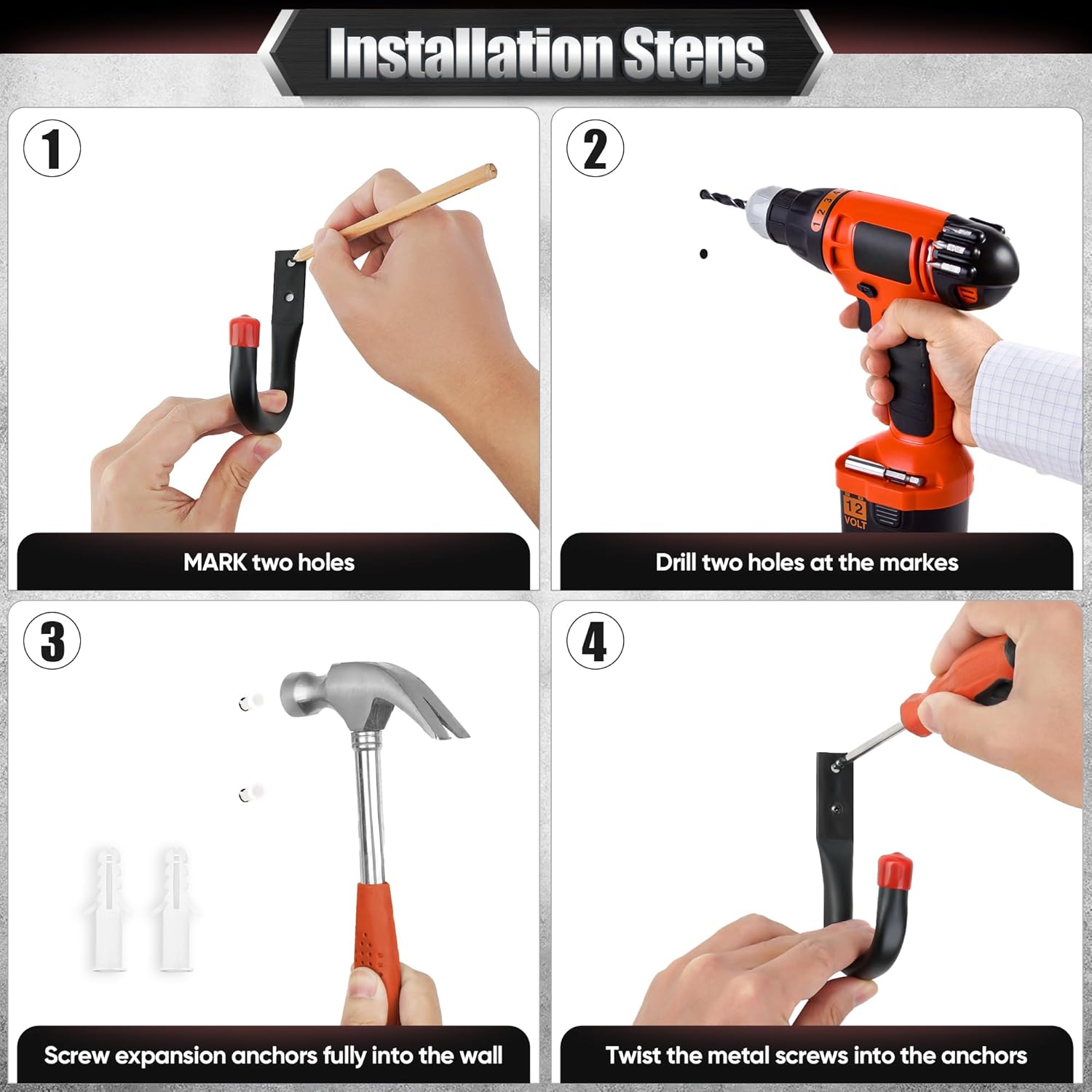 - Effortless Installation: We know many customers struggle with incorrect installation locations or want to move their garage hooks but often find themselves short on screws. That’s why Nacial provides ample screw sets—our 10 pack garage hook includes 2*38 screws. Each garage hook comes with 2 types of screws, and with just a drill or screwdriver, you can effortlessly install them on drywall, wood, concrete, or brick walls. Enjoy quick and easy organization with Nacial!