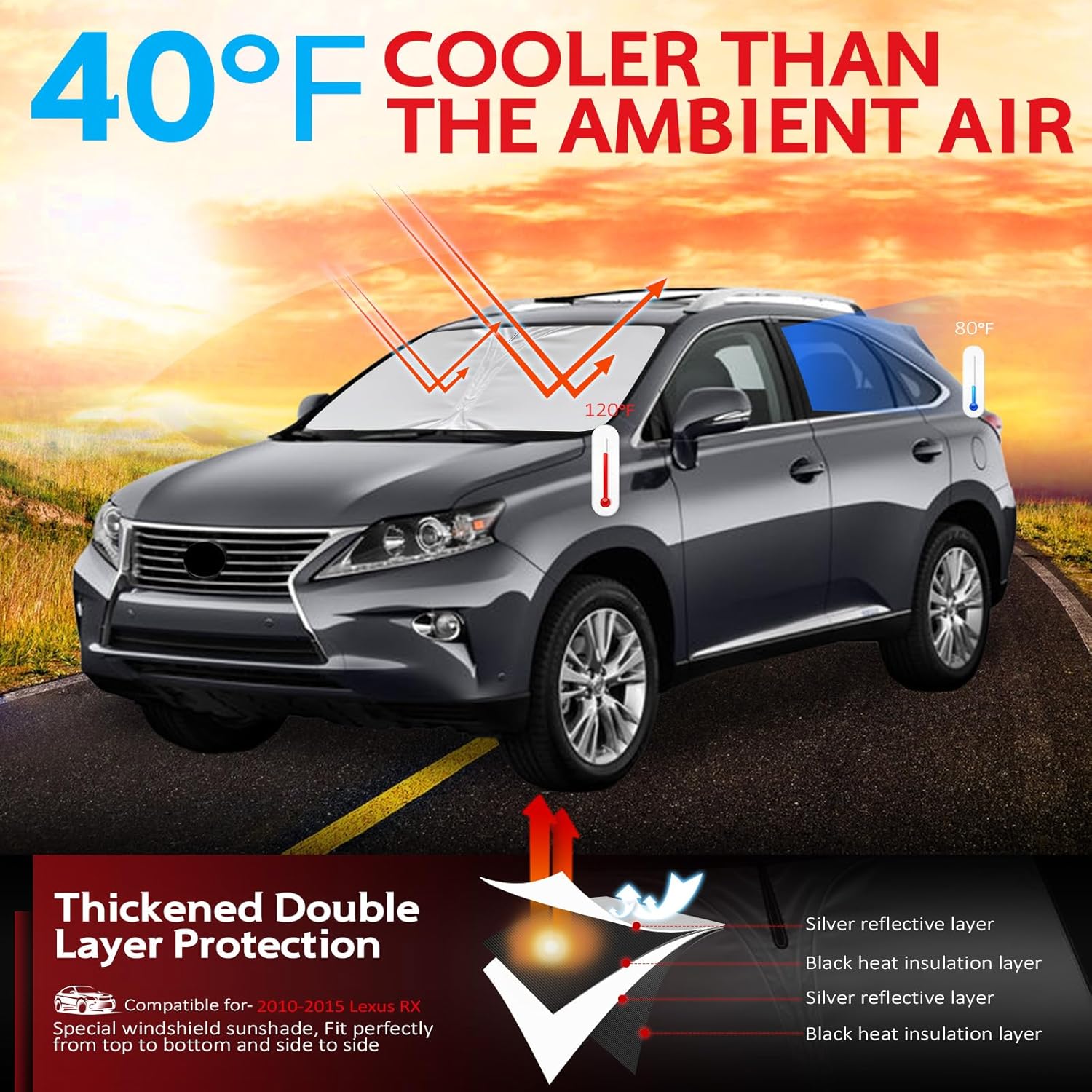 KAYZT Windshield Sun Shade for 2010-2015 Le-xus RX350/RX350h/RX450/RX450h Foldable Sunshade Front Window Custom Fit Car Accessories