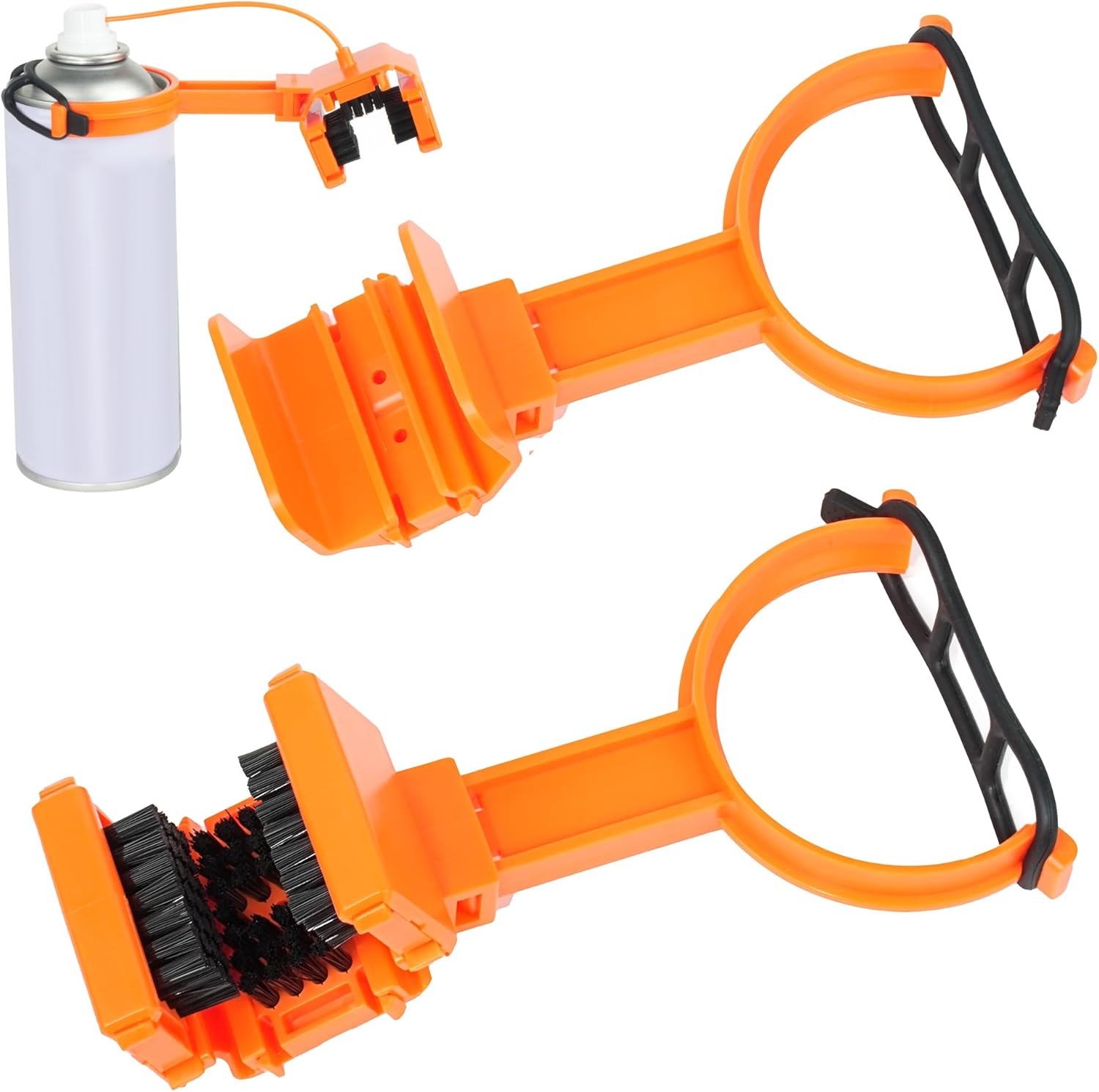 - 【Please Note!】:Only applicable to iron pressure tanks, this brush is designed to fit iron aerosol cans with a ring groove around the top, commonly found on chain cleaners and chain lubricants. The brush clips securely into the groove for stable use. Aluminum cans are usually made with a one-piece stretch forming process and do not have a ring groove, making them incompatible with this brush. Please ensure your can is made of iron before purchasing.