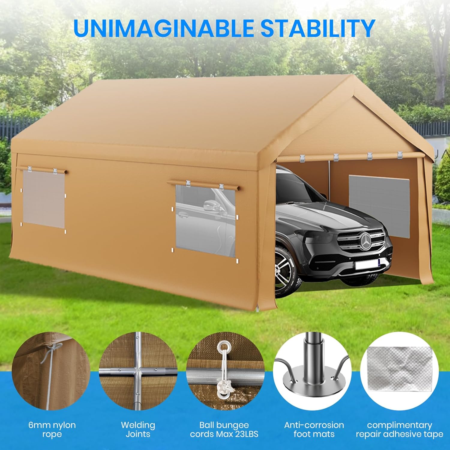 - UV Resistant & Weatherproof:The canopy is UV resistant, helping to protect your vehicles and equipment from sun damage while keeping them cool during the hot summer months. The waterproof material ensures that your belongings stay dry even in rainy weather, offering year-round protection.