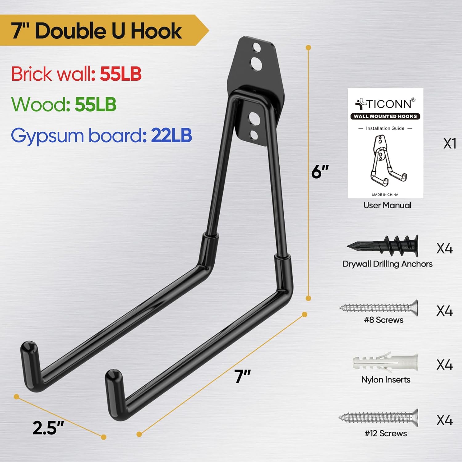 - [HEAVY DUTY MATERIAL] The garage hooks are made of sturdy iron and thickened steel plate with a rust-resistant and waterproof coating. The PVC sheath design provides protection against scratches and slipping. These hooks can support weights up to 154 lbs, ideal for hanging heavy items in your garage