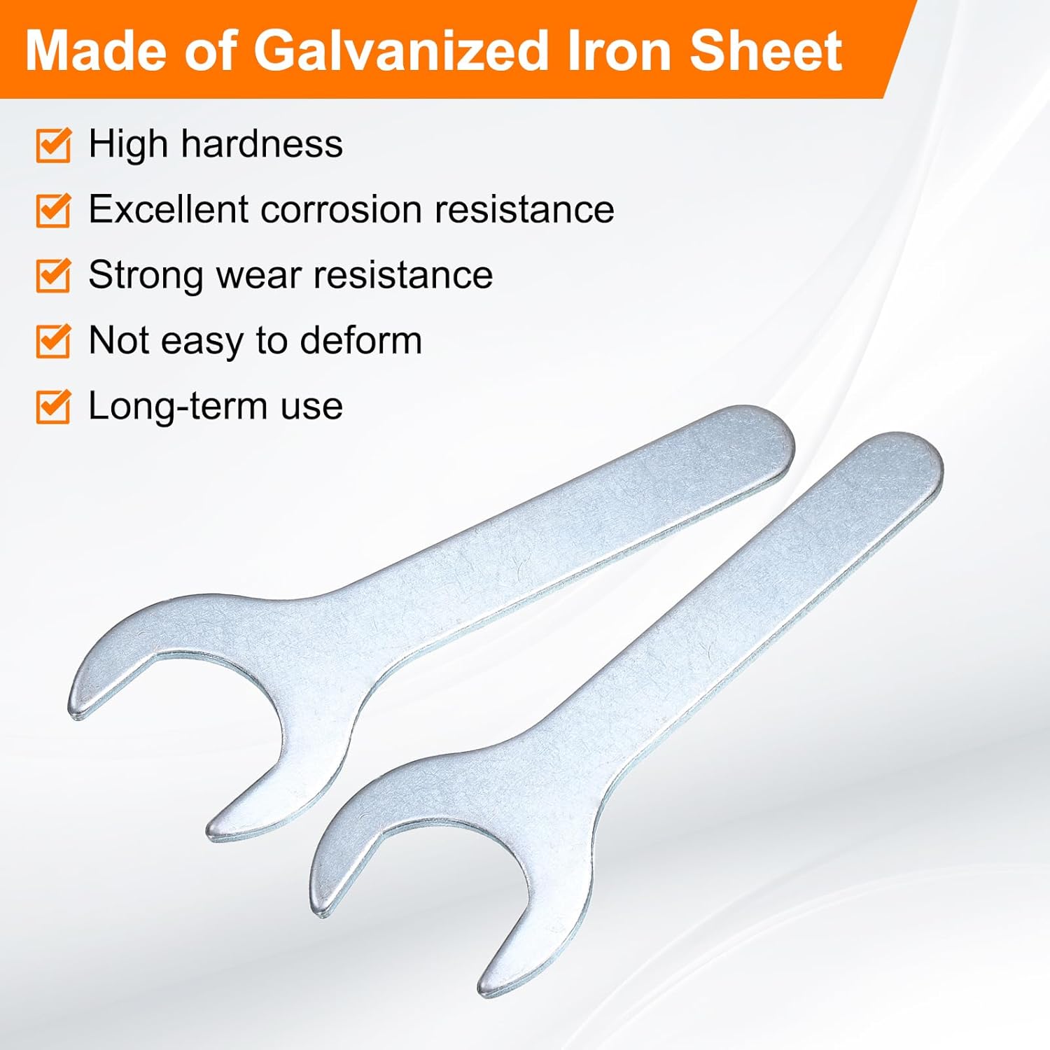- Long Lasting - Our single open-end wrench is made of an iron plate, which has high hardness and excellent corrosion resistance. The surface galvanizing improves its wear resistance, keeps its surface smooth and reduces wear, is not easy to deform, and can be used for a long time.