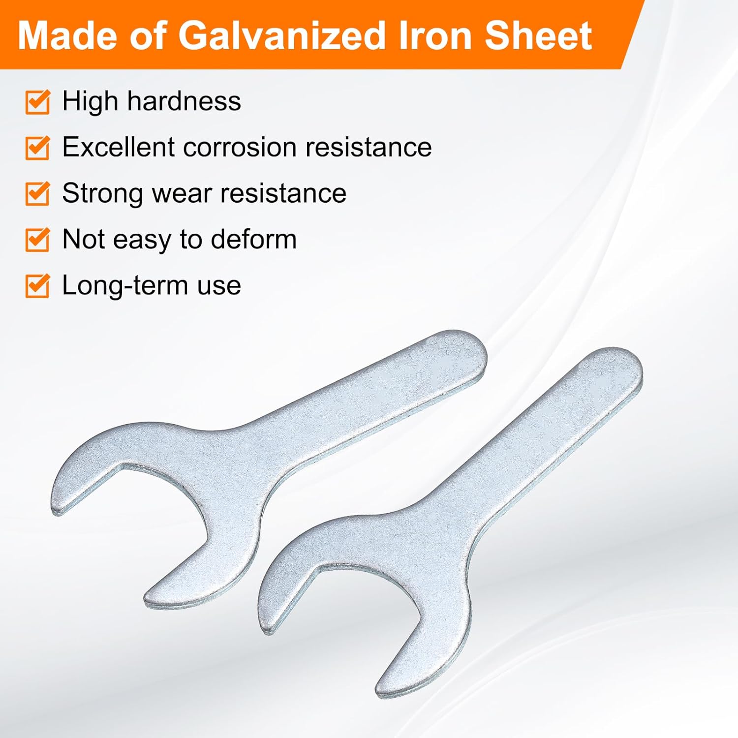 - Long Lasting - Our single open-end wrench is made of an iron plate, which has high hardness and excellent corrosion resistance. The surface galvanizing improves its wear resistance, keeps its surface smooth and reduces wear, is not easy to deform, and can be used for a long time.