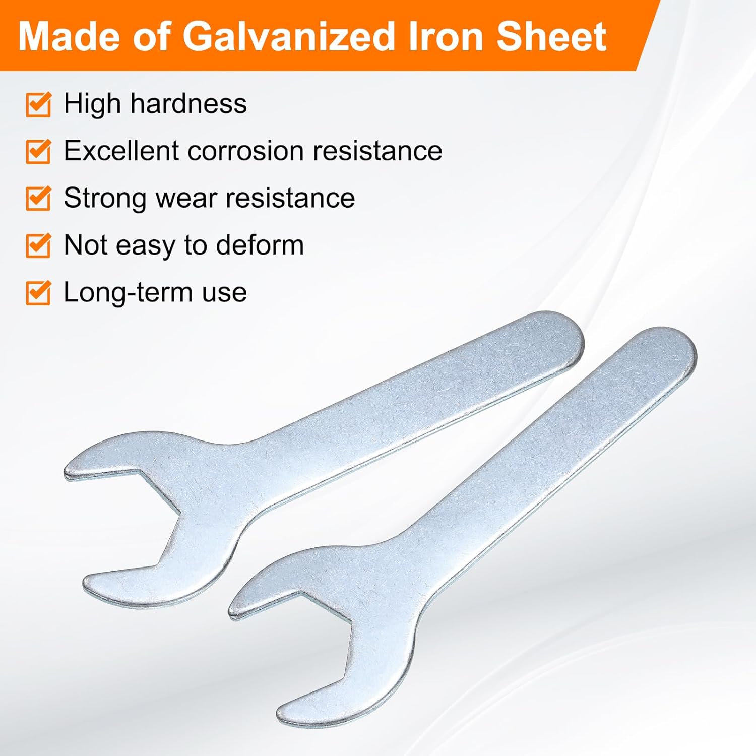 - Long Lasting - Our single open-end wrench is made of an iron plate, which has high hardness and excellent corrosion resistance. The surface galvanizing improves its wear resistance, keeps its surface smooth and reduces wear, is not easy to deform, and can be used for a long time.
