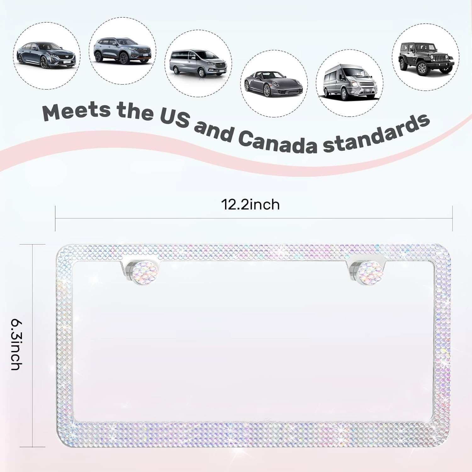 - 【Super Sparkly License Plate Frames】: Why go for boring plain license plate frames when you can go super fab with a car plate frame with actual rhinestones in it? Give your car a new cool look now! 2 Pack license plate frames for women are sure to make your car catch everyone’s eyes on the road