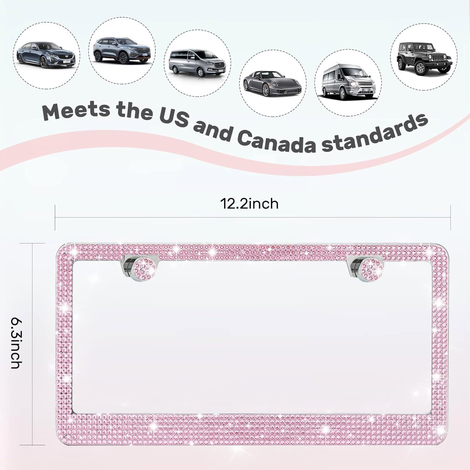 2 Pack License Plate Frames for Women, Sparkly Rhinestone Diamond Car Accessories with Glitter Crystal Caps (Pink (2PCS))