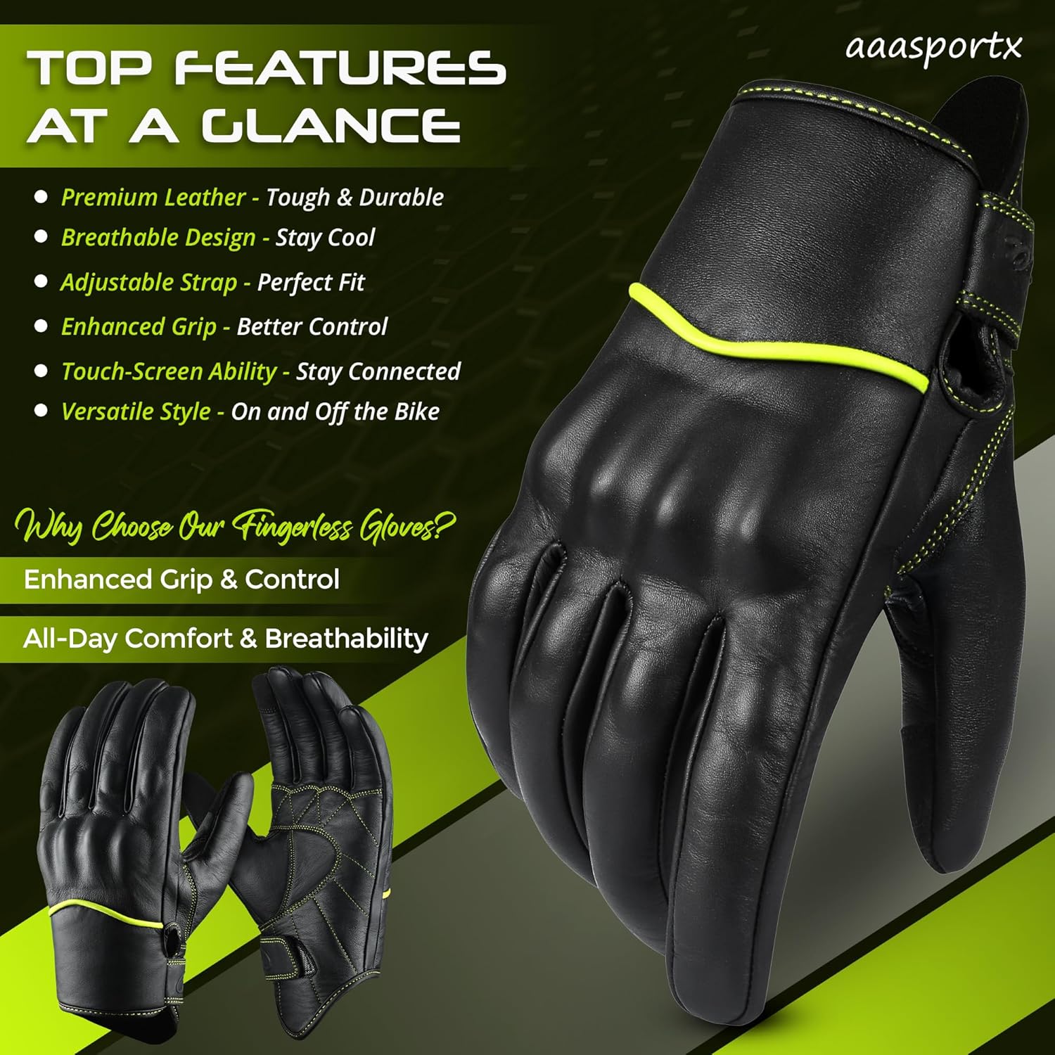 - LEATHER MOTORCYCLE GLOVES - aaasportx black and yellow Motorcycle Gloves are made of Genuine Leather. Our Lightweight Motorcycle Gloves ensures durability through a variety of situations. aaasportx Motorcycle Gloves for Men offer a high-quality, stylish, and durable finish that excludes sophistication and toughness on the road.