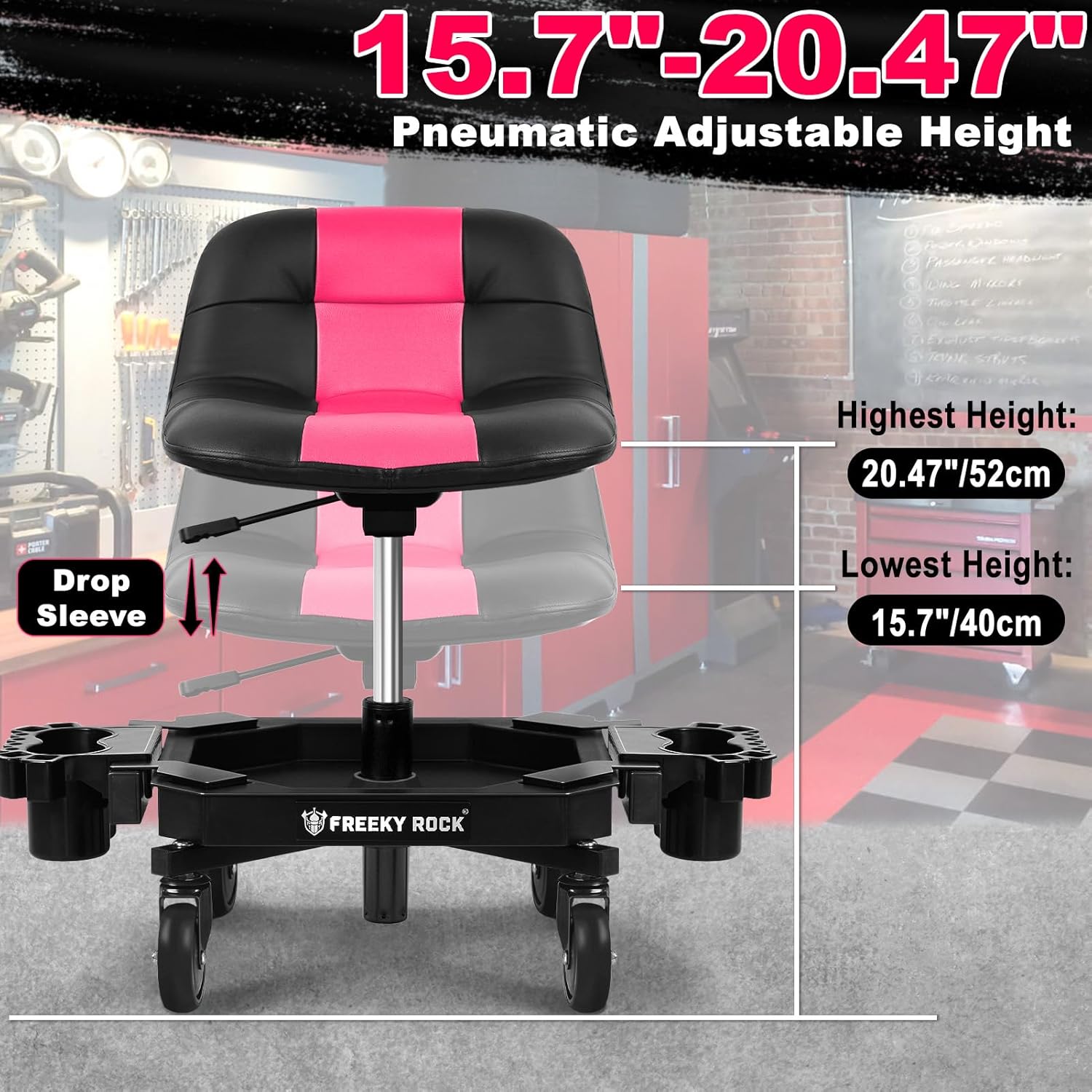 - Adjustable Height Rolling Stool: 15.7" to 20.47". The rolling stool have adopted a sturdy 360° Swivel pneumatic height adjustment structure, allowing easily adjust the height from 15.7" to 20.47". Adjusting the stool to the appropriate height can make your work more comfortable and efficient