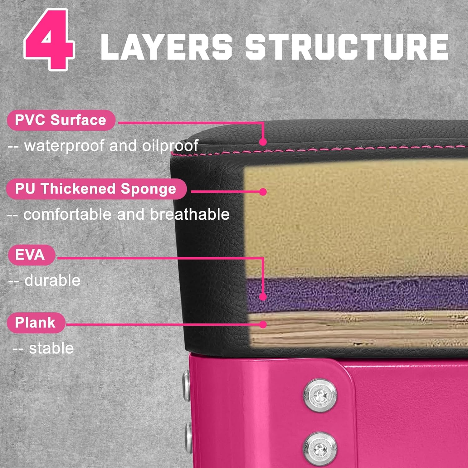 - Comfortable 4 Layers Structure Padded Seat : The Mechanic roller seat cushion is consists of 4 layers structure. The 1st layer is a solid wooden plank, the 2nd layer is a durable EVA, the 3rd layer is a comfortable and breathable PU thickened sponge, and the 4th layer is a waterproof and oilproof PVC surface. Plump and Soft Touch, Awsome Support, and Very Comfortable.