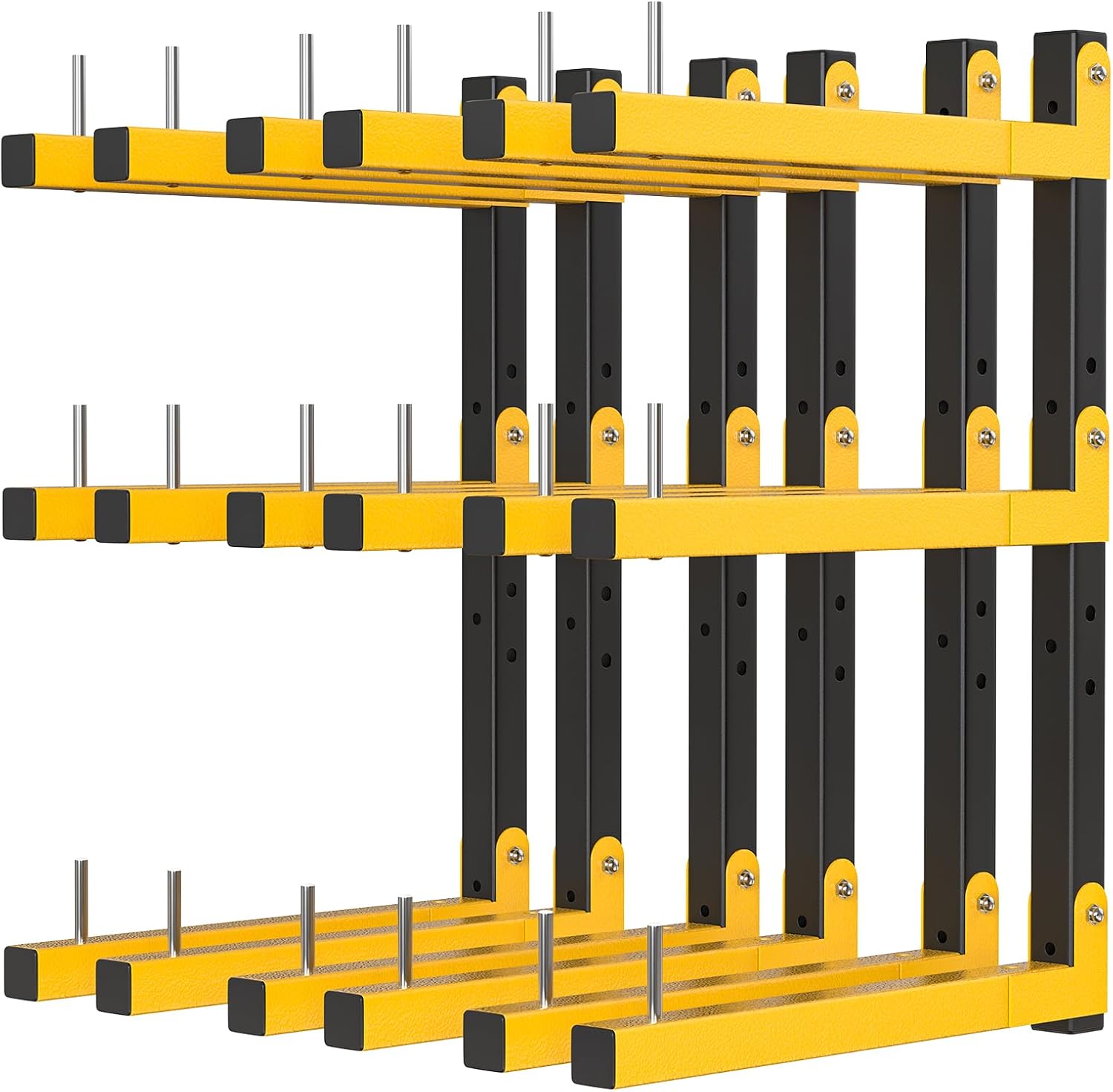 - HIGH STRENGTH MATERIAL: Heavy duty storage rack is made of 1.21mm thick steel pipe. It will not deform and bend easily, and its safe load-bearing capacity is beyond doubt. The surface of the garage storage rack is painted with yellow paint, which is not only beautiful, but also waterproof and not easy to rust.