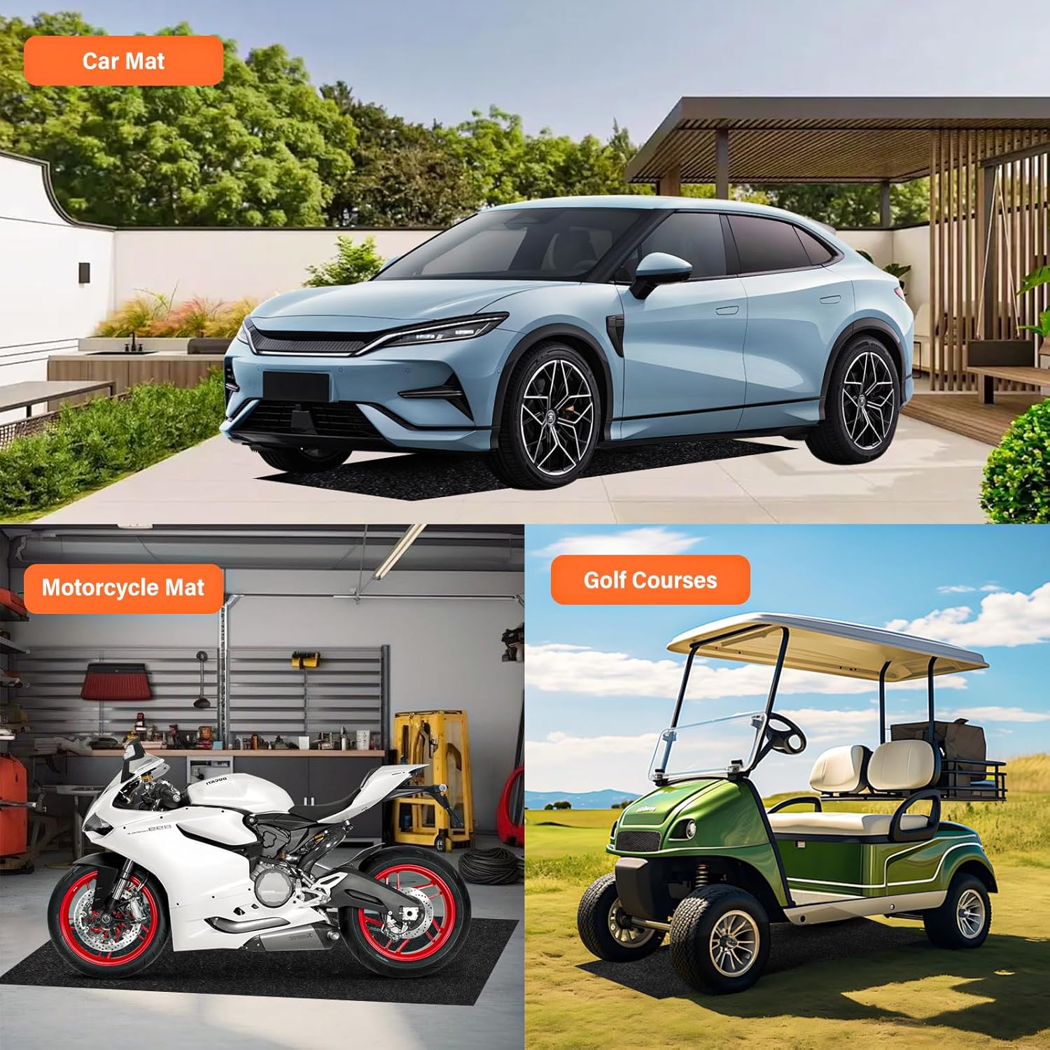 - EASY TO INSTALL AND CUT: Please keep the floor clean and dry when installing, just lay the oil spill mat for under car flat to the right position;There may be some wrinkles on the mat, but these will disappear over time;The size of the undercarriage oil spill prevention mats can be customized, easy to cut, won't crack, and can be made to fit the shape of your garage