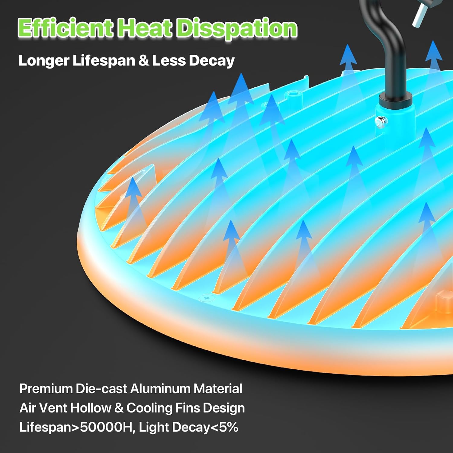 - Brighter & Energy Saving: This UFO high bay LED light provides 28000lm high brightness with efficacy up to 140lm/w, making a wider and clearer illumination area while consuming at least 85% less energy compared to traditional lights or sodium bulbs. Ideal for use in commercial and industrial lighting