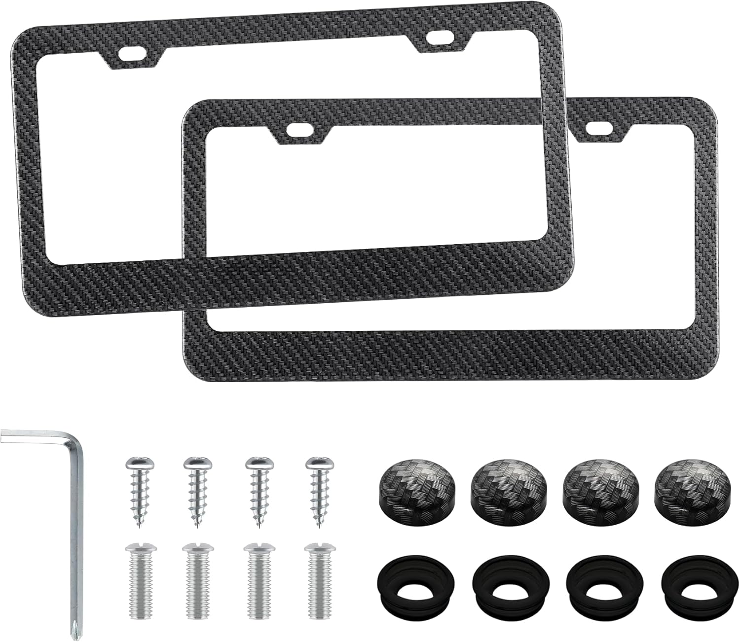 LivTee Carbon Fiber License Plate Frames, 2 Holes Stainless Steel License Plate Covers, 2PCS Car License Plate Holder, Automotive Exterior Accessories, Slim Design with Gasket Cover for US Cars