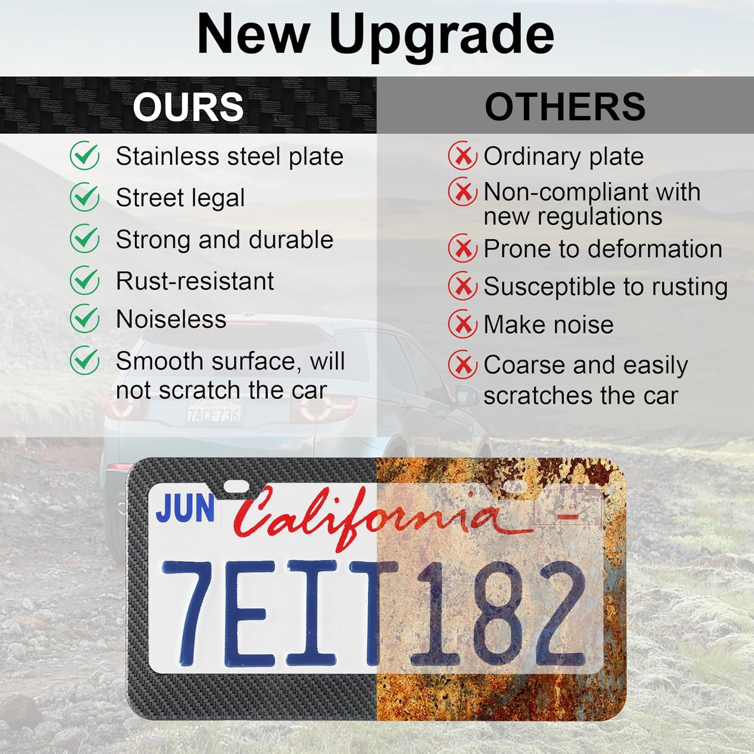 - 【Durable and Weather-Resistant】Crafted from high-quality stainless steel, these license plate frames resist rust, corrosion, wear, water, and high temperatures. The 1.2mm thick powder coating ensures they are fade and chip-resistant, maintaining durability and a stylish appearance in all weather conditions.