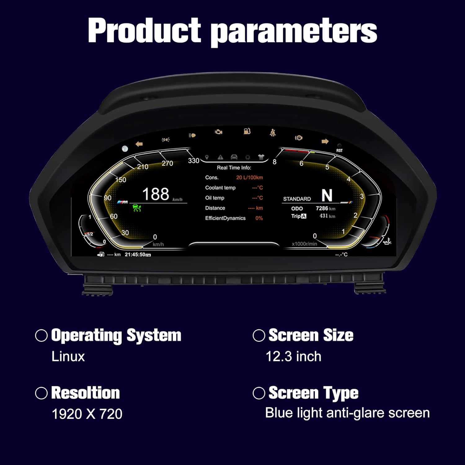 - 🚗[Applicable Models] The LCD digital instrument cluster is precisely customized for BMW F30 F31 F32 F33 GT-F34 F36 2013-2020 with NBT,EVO system. It is equipped with a 12.3 inch high-definition screen boasting a resolution of 1920*720. Supports all original features