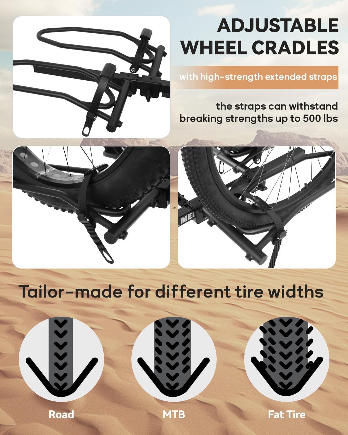 - Mounting Type : Strap, Wheel Cradle, Frame Clamp with Lock