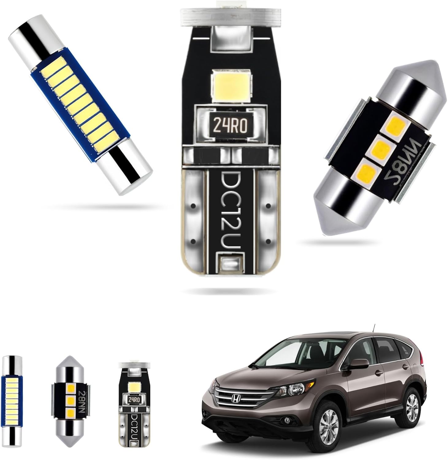 - Complete Upgrade with Installation Tool: The Complete LED Interior Car Lights Package for your Honda CRV includes a total of 10 LED light kits, covering all your interior lighting needs. This comprehensive upgrade enhances your Honda CRV's lighting system with map lights, dome lights, vanity mirror lights, glove box lights, footwell lights, and license plate lights. The package also includes 1 install tool and 1 placement diagram for easy installation.