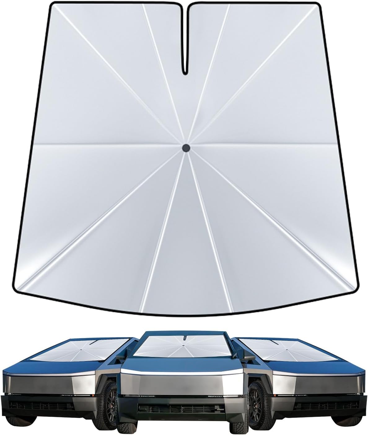 helloleiboo [2025 Upgrade] Car Windshield Sun Shade for Tesla Cybertruck-Foldable Windshield Sun Shade 64 * 58-Reflects UV Automotive Interior Sun Protection Easy to Use/Store