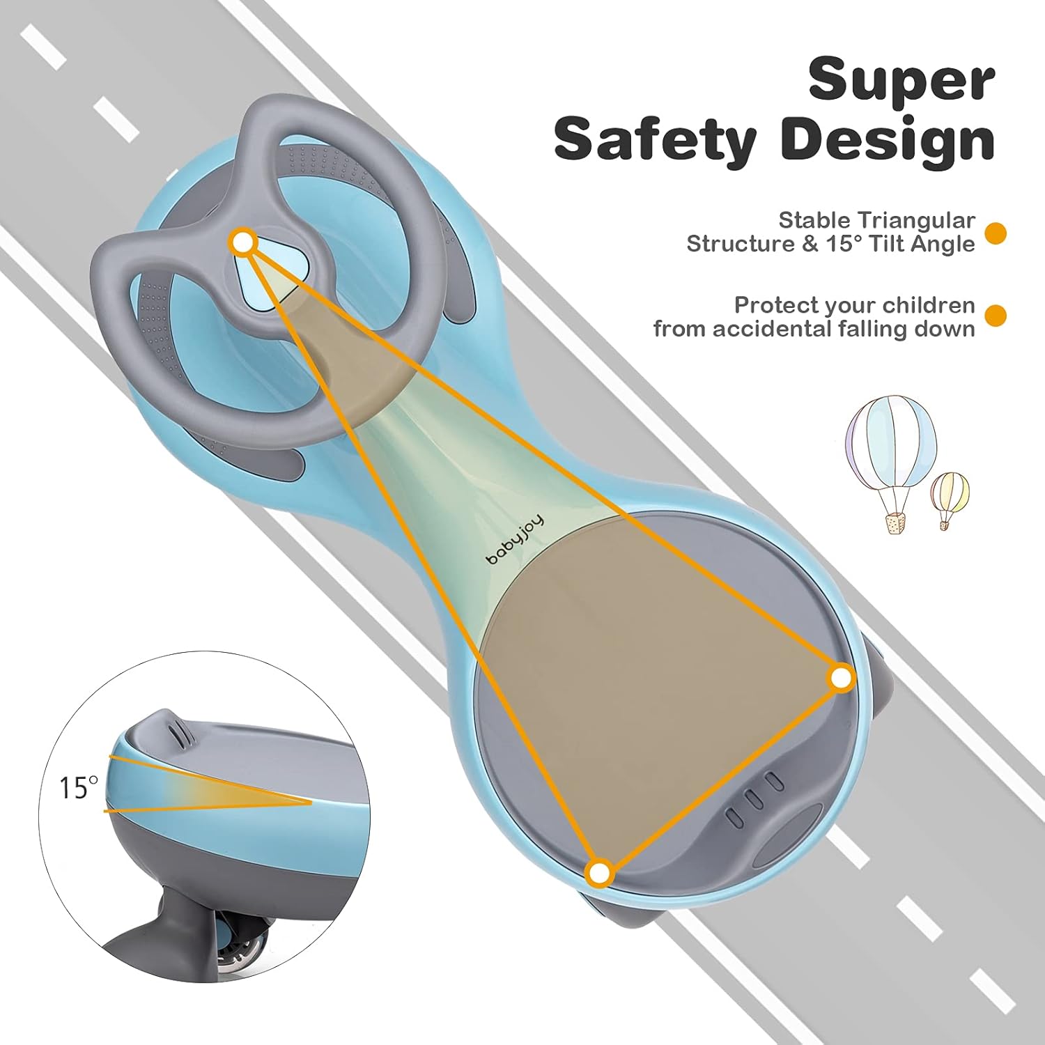 - Safe and Scientific Design: The wiggle car features a smooth and burr - free surface, safeguarding children from any accidental scratches. The specifically designed 15°dip angle is a clever addition, effectively preventing backward falls. The overhang front wheel is another safety - oriented design, preventing the ride on toy from toppling forward and rolling over. Additionally, the non - slip foot mats add an extra layer of safety, allowing kids to ride with confidence.