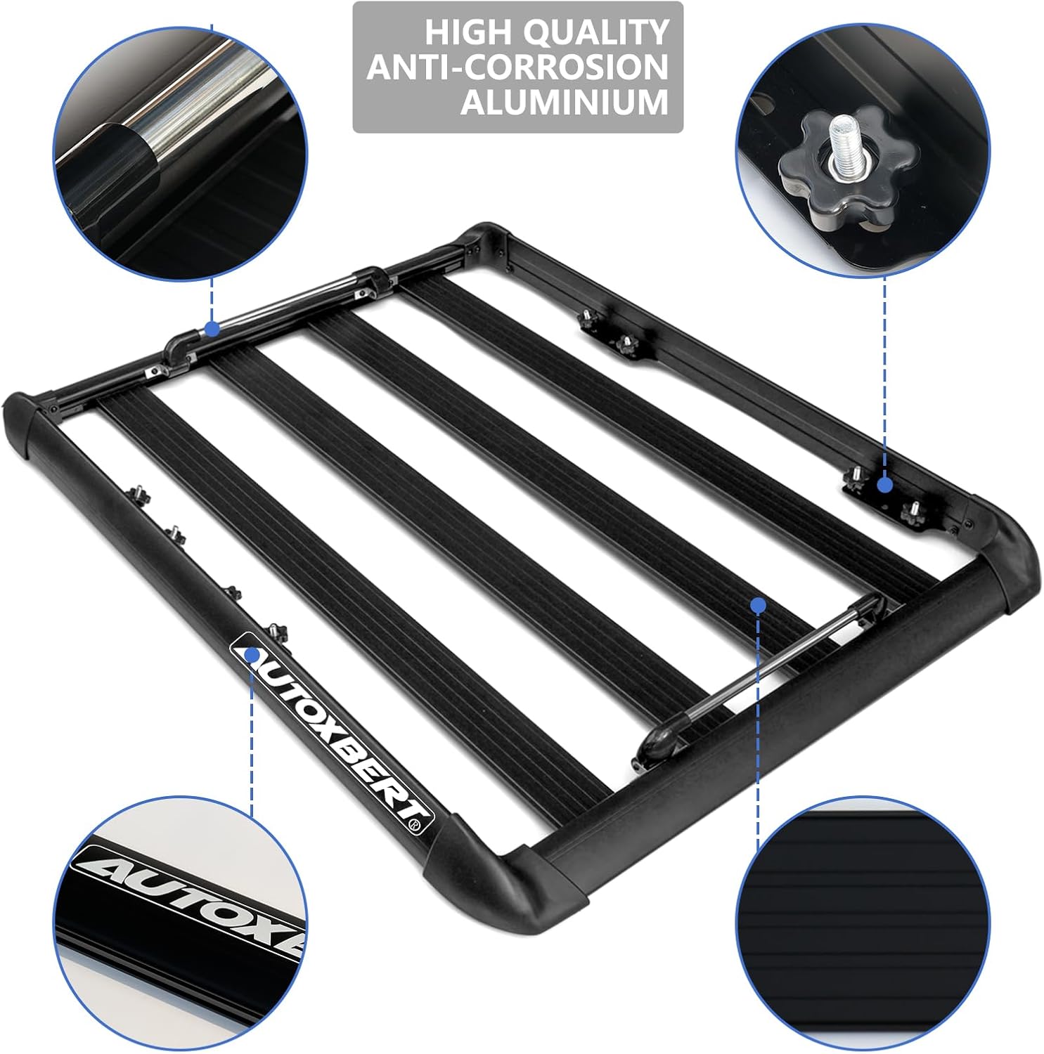 AUTOXBERT 50" x37.8" x3.54" Universal Aluminum Roof Rack Rooftop Cargo Carrier Luggage Basket 330LBS Heavy Duty Car Top Luggage Holder or Cars SUVs and Trucks