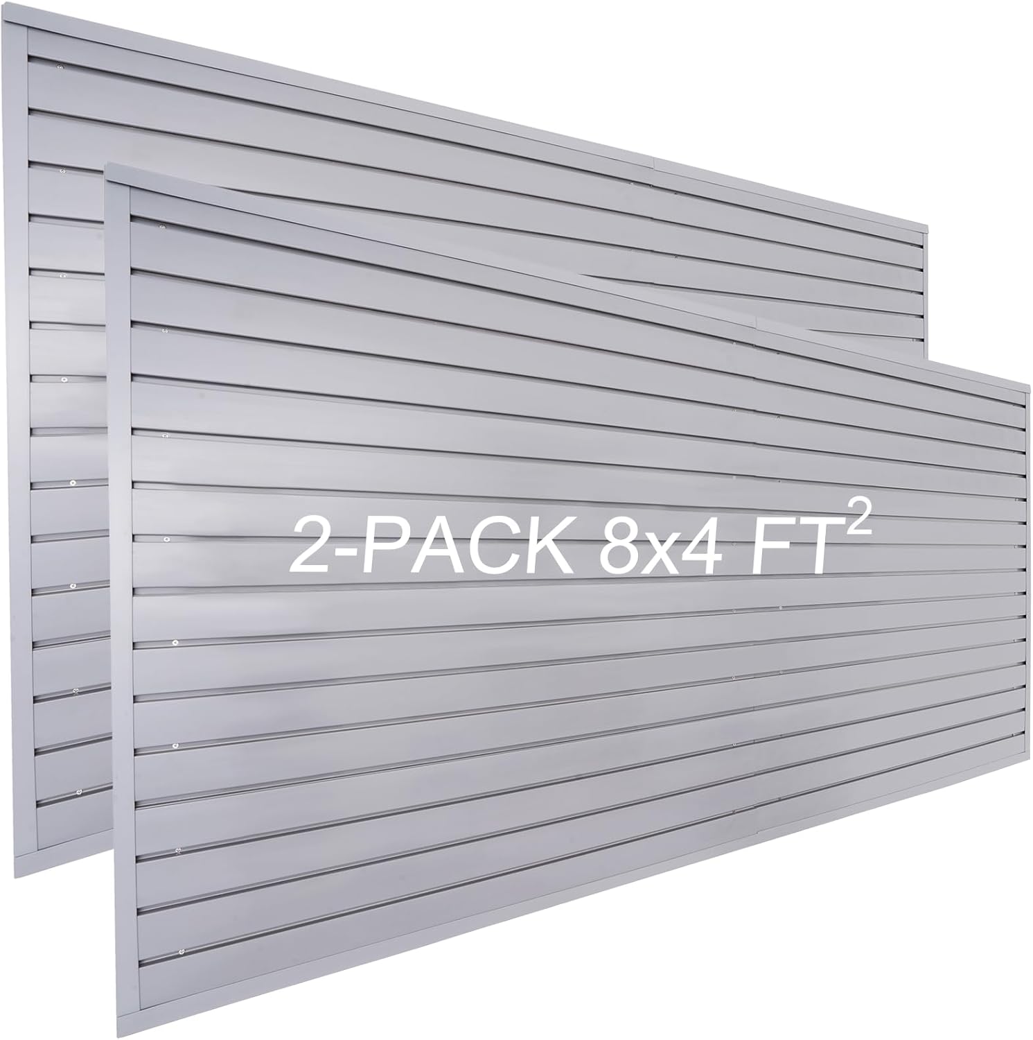 - 2 PACK SLAT WALL PANELS 4x8 FT : Our durable garage slat wall panel system includes 16pcs 4ft x 1ft slatwall panels, offering a coverage of 64 sqft. Whether used individually or in combination, these slat wall panelings allow you to create the perfect setup that suits your needs. If you need extra slat wall storage organizer space, you can effortlessly expand and customize your ideal configuration by adding more garage slatwall panels. Meet evolving needs with personalized storage flexibility.