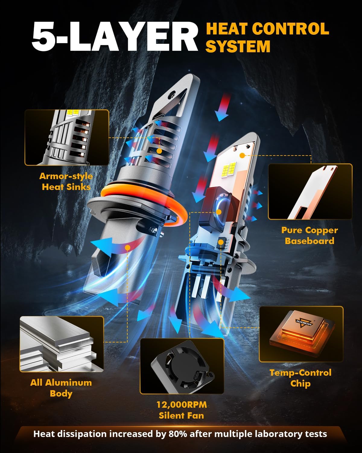 - TEMP CONTROL SYSTEM: Designed with built-in latest temp control chips, 12,000RPM 9-blade silent fan, pure copper baseboard, all 6063 aviation aluminum lamp body, armor-style heat sinks. Directly improves 80% heat dissipation and gain an extend service life over 50,000 hours.