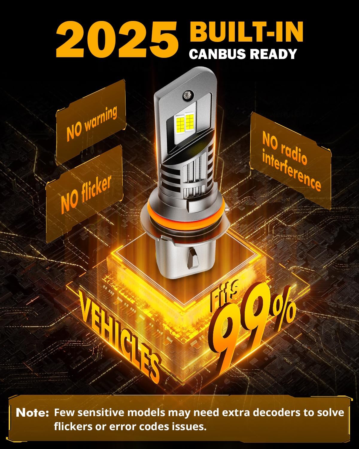 - 99% Super Compatible: Built-in intelligent decoding chips, highly compatible with 99% models' system without causing errors and flickers. Note:1% sensitive models still need decoders. Please message auxbeam to help slove the problem.